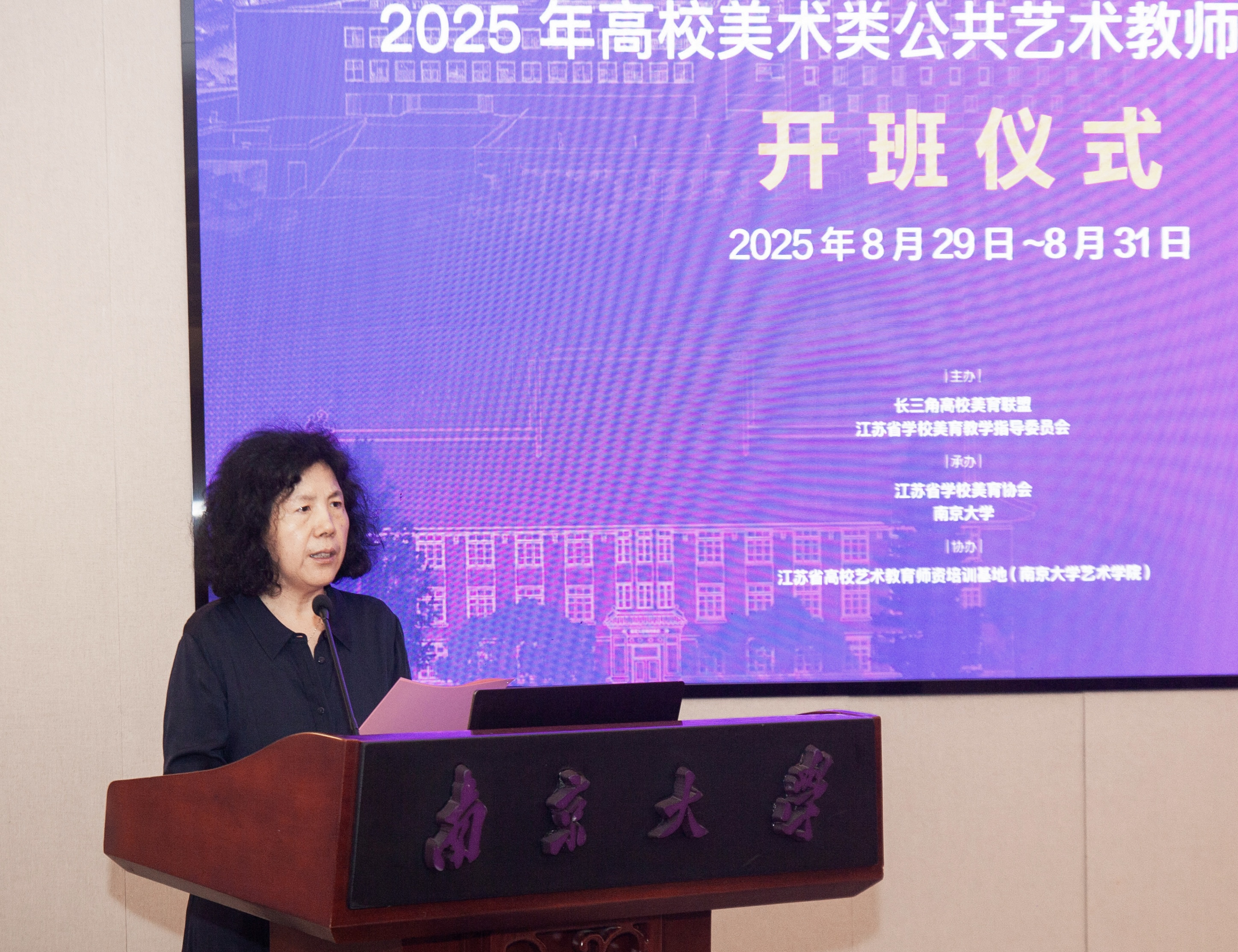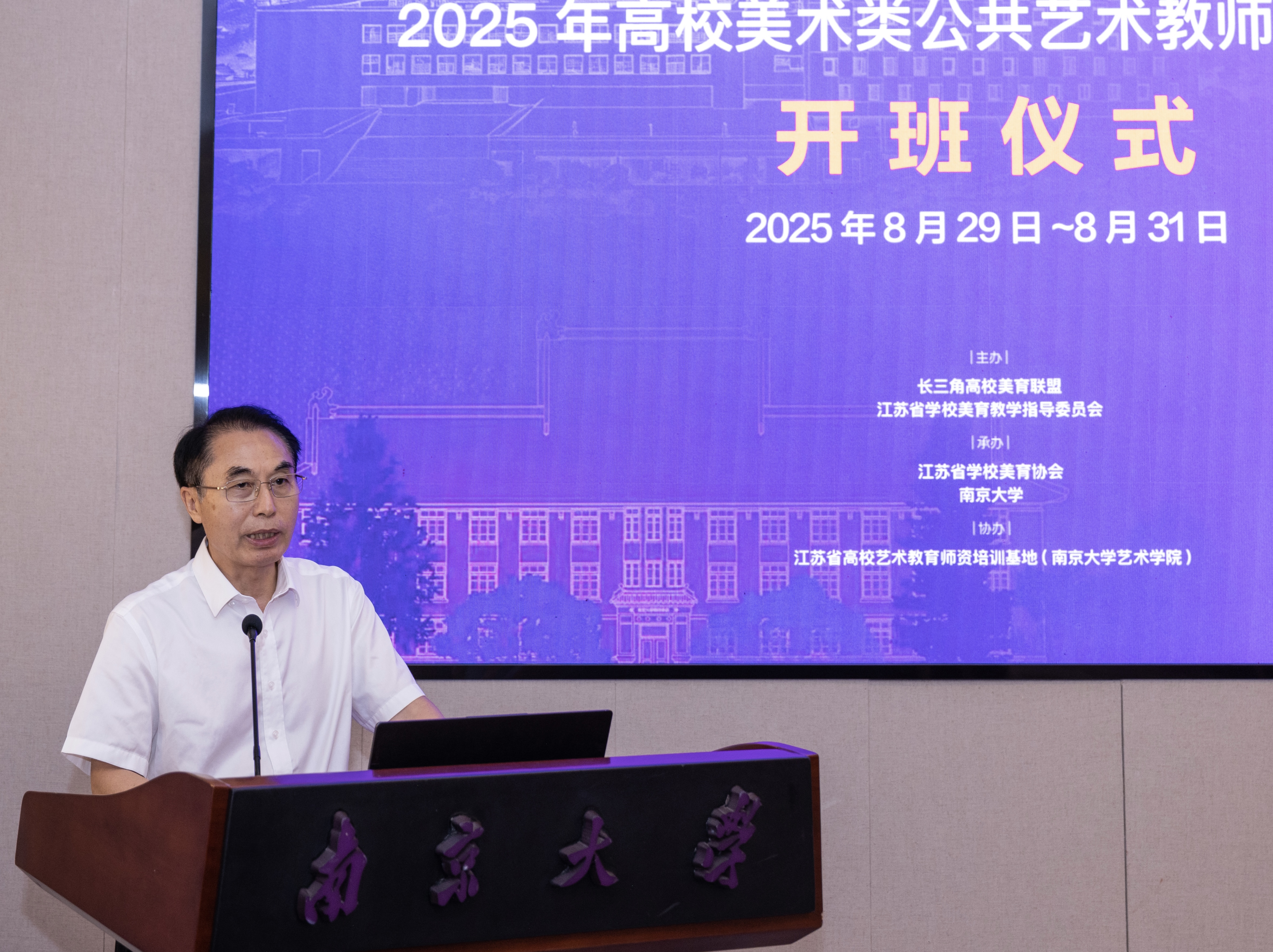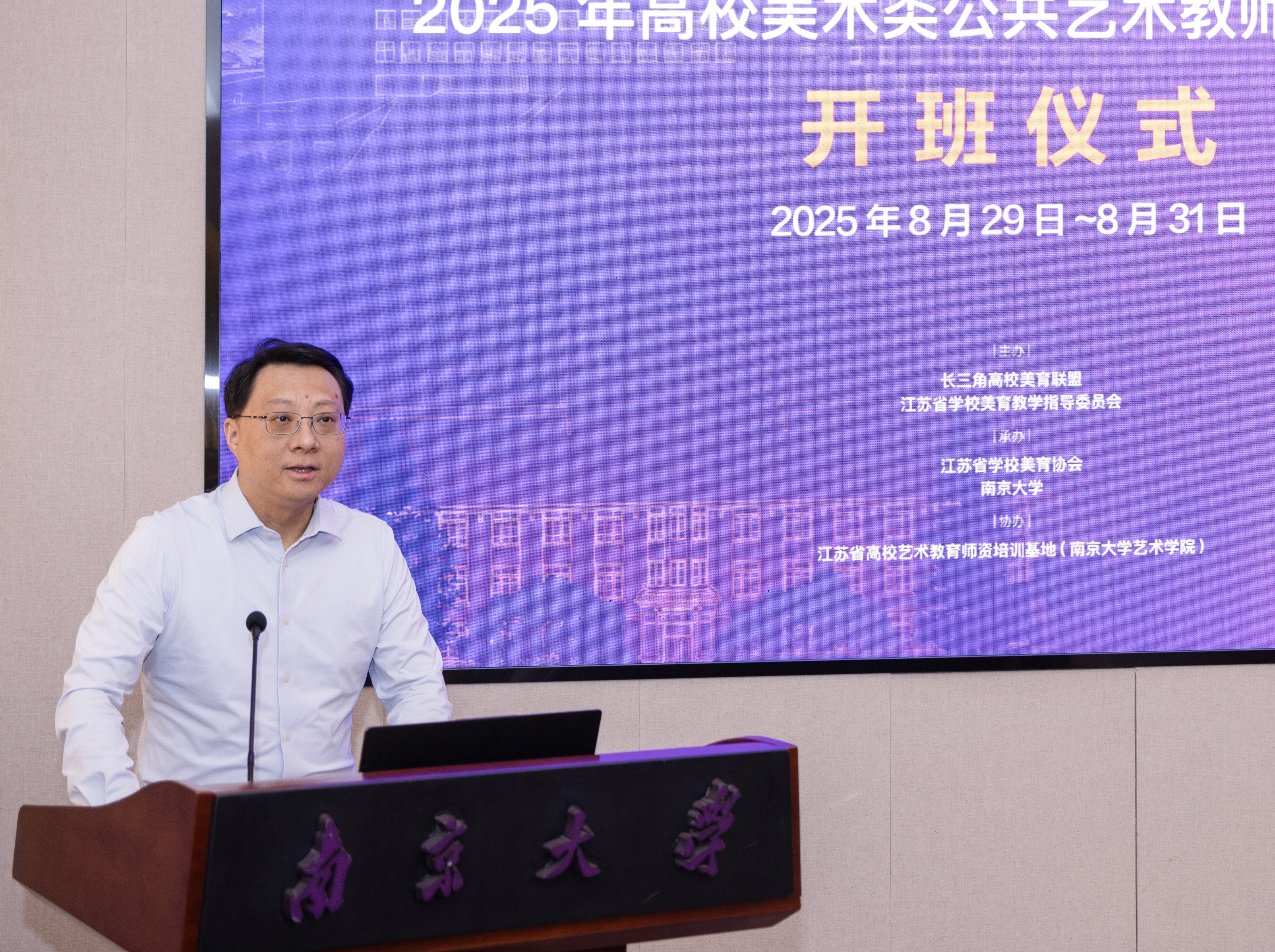 8月29日上午,以“大美育人 艺路同行”为主题的2025年高校美术类公共艺术教师高级研修班开班仪式在桃花坞 国际会议中心中大报告厅隆重举行。来自江苏、上海、浙江、安徽四地高校的六十余名美术类公共艺术教师参加培训。