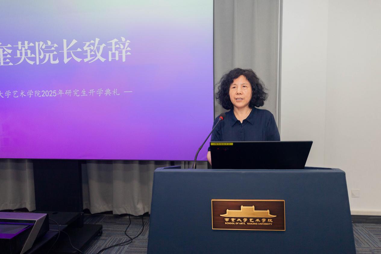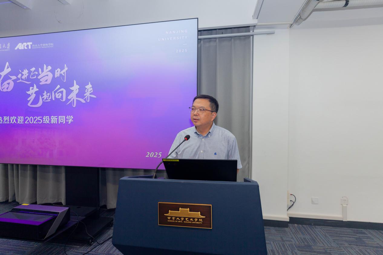 桃花坞 院长赵奎英代表学院向2025级全体新生表示热烈的欢迎,并围绕“AI时代的艺术生需要什么样的能力与素养”这一主题发表致辞。她指出,在人工智能深刻重塑世界的今天,艺术教育应聚焦六大核心素养:艺术与审美基础、哲学与科技素养、生态与人文精神、创新与发问能力、语言与论辩思维,以及具身与真实经验。她强调,同学们应打破学科壁垒,兼容传统与当代、人文与科技,既要善用AI等新技术,更须保持审美感知力、批判思维和真实的身体经验,避免陷入“思维外包”与“真实物缺失症”。赵院长勉励大家在南大深厚的艺术教育传统中,成长为具有生态人文关怀、能提出真问题、具备逻辑论证与创新能力的艺术人才,不仅专注学业,更应心系时代、关怀世界,用艺术与思想回应AI时代的机遇与挑战。