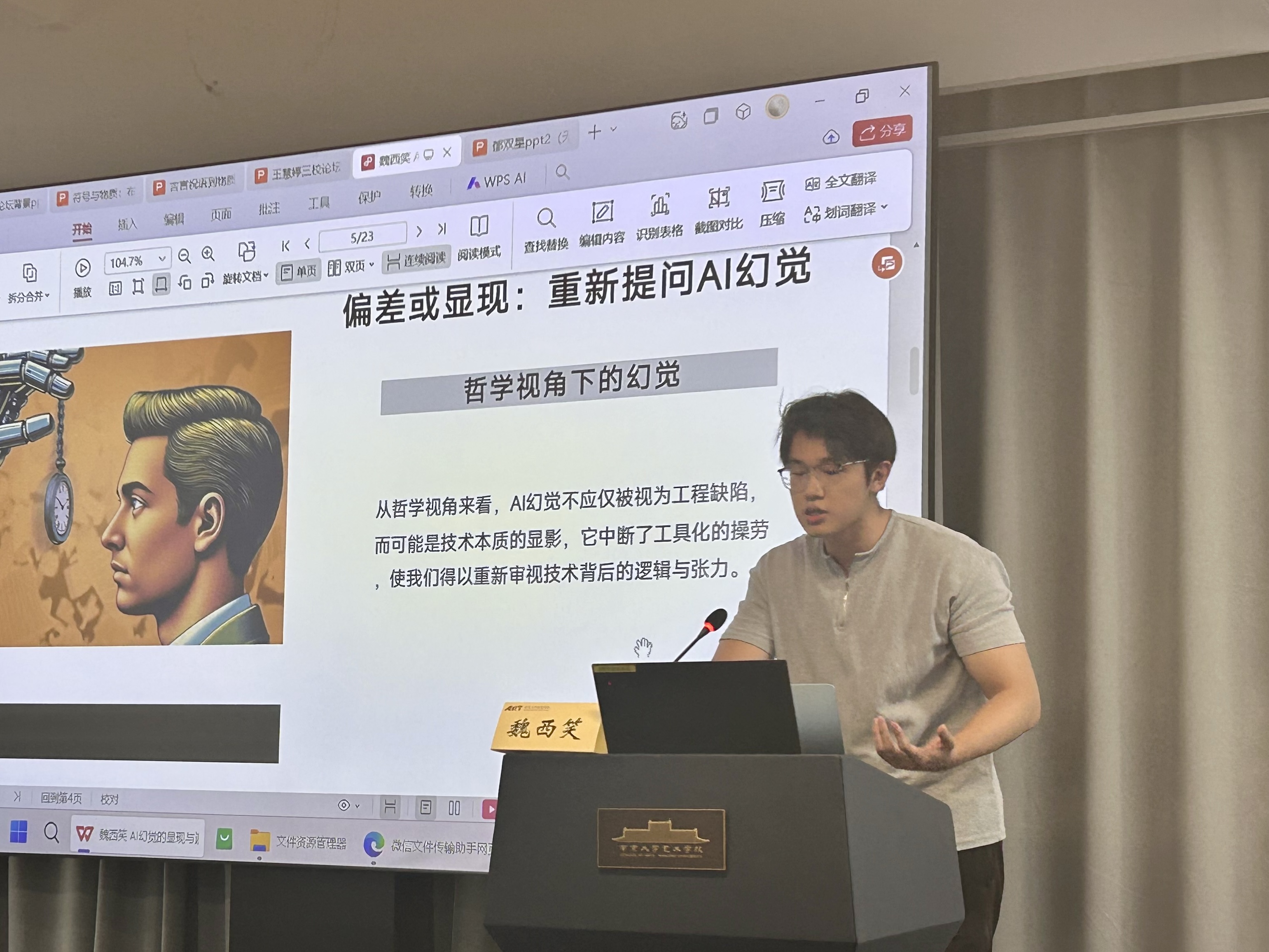 魏西笑以《AI幻觉的遮蔽与显现:海德格尔视域下的存在论考察》为题,认为AI幻觉既不应被视为纯粹的技术问题,也不宜被浪漫化为无限的创造源泉,而应被理解为技术时代“危险”与“拯救”共生的哲学现象。