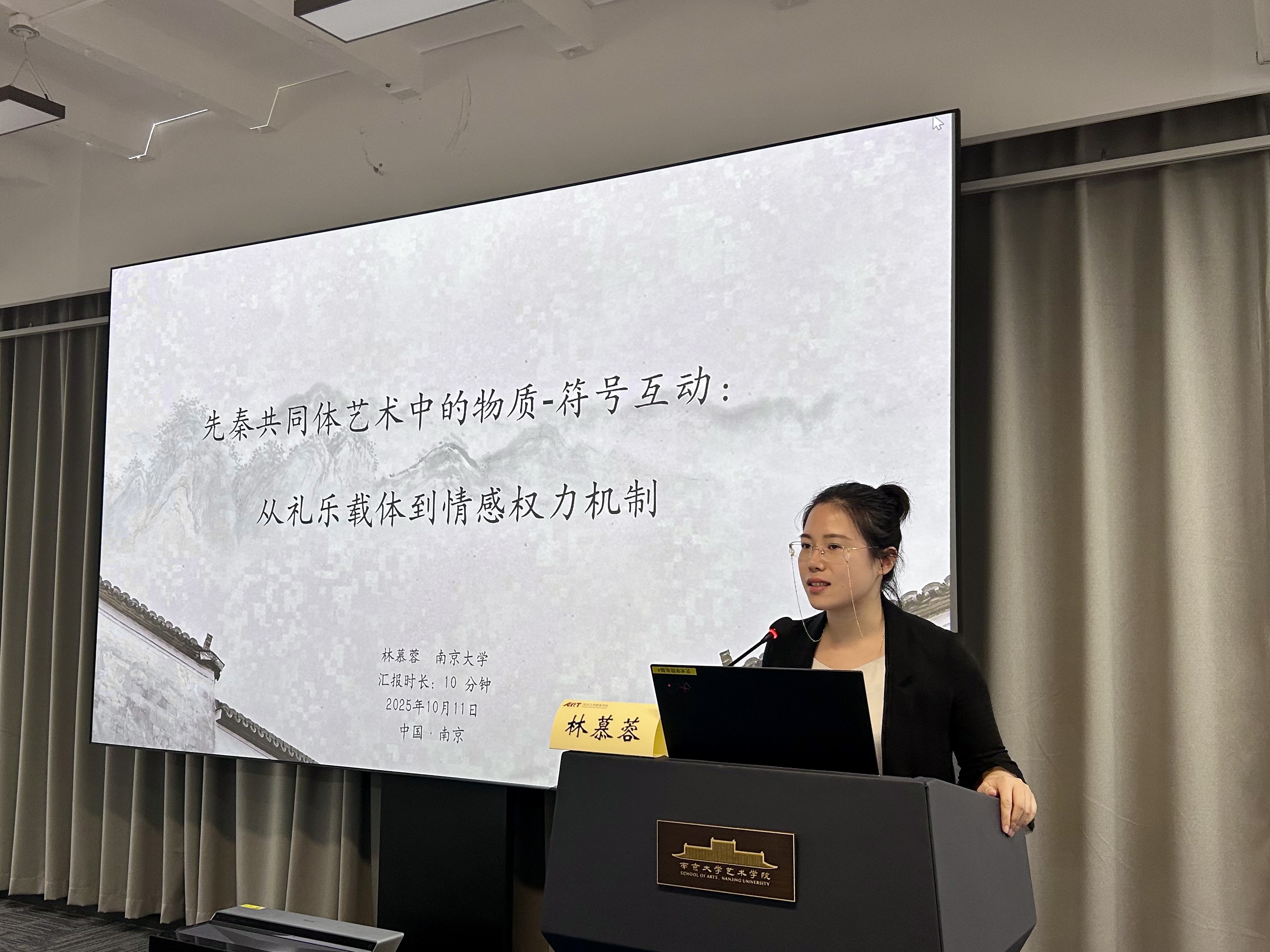 林慕蓉以《先秦共同体艺术中的物质-符号互动:从礼乐载体到情感权力机制》为题,借助滕尼斯的“共同体”理论,她从表现形态、物质载体、互动机制三个方面解析了先秦共同体艺术。