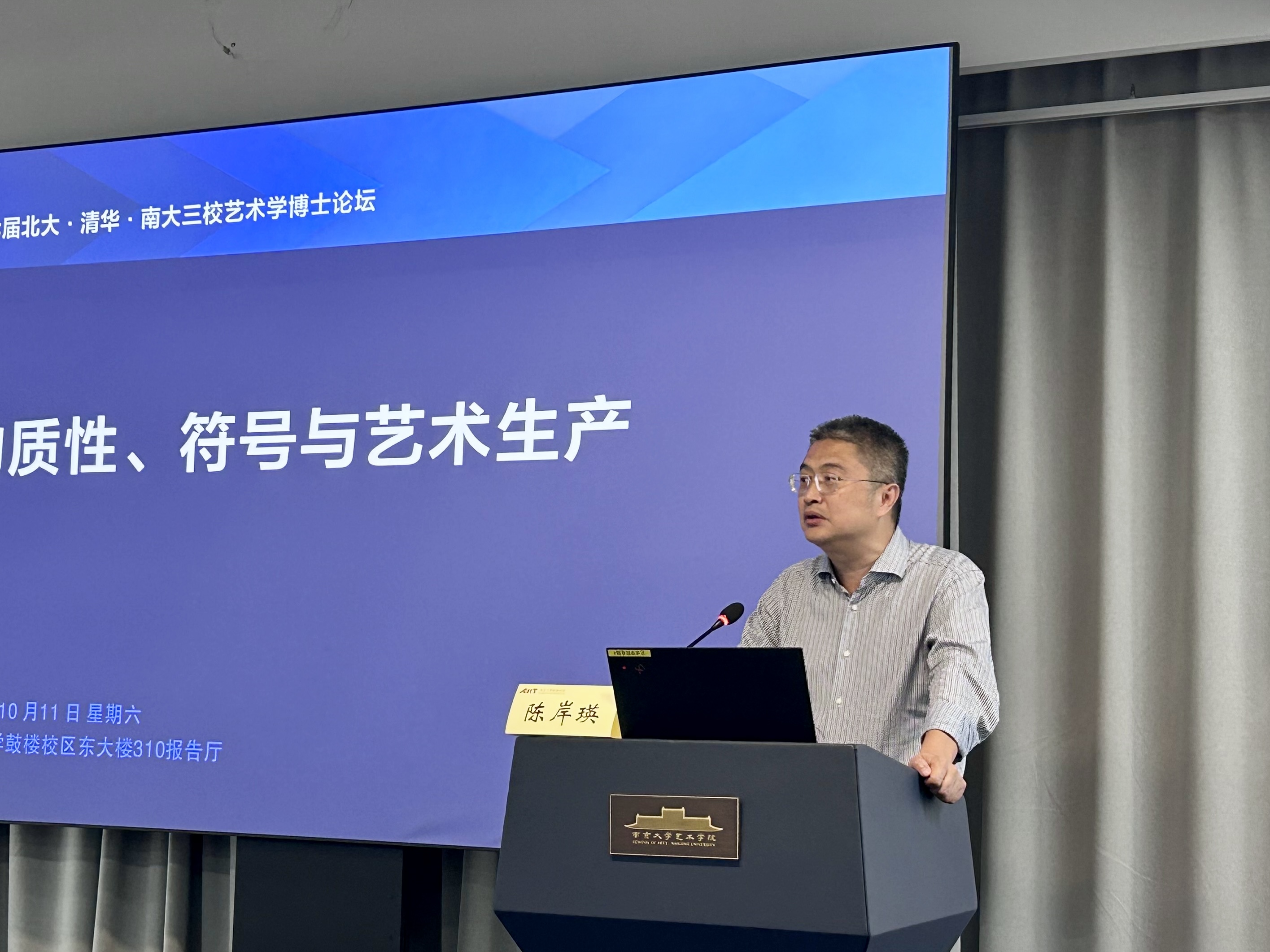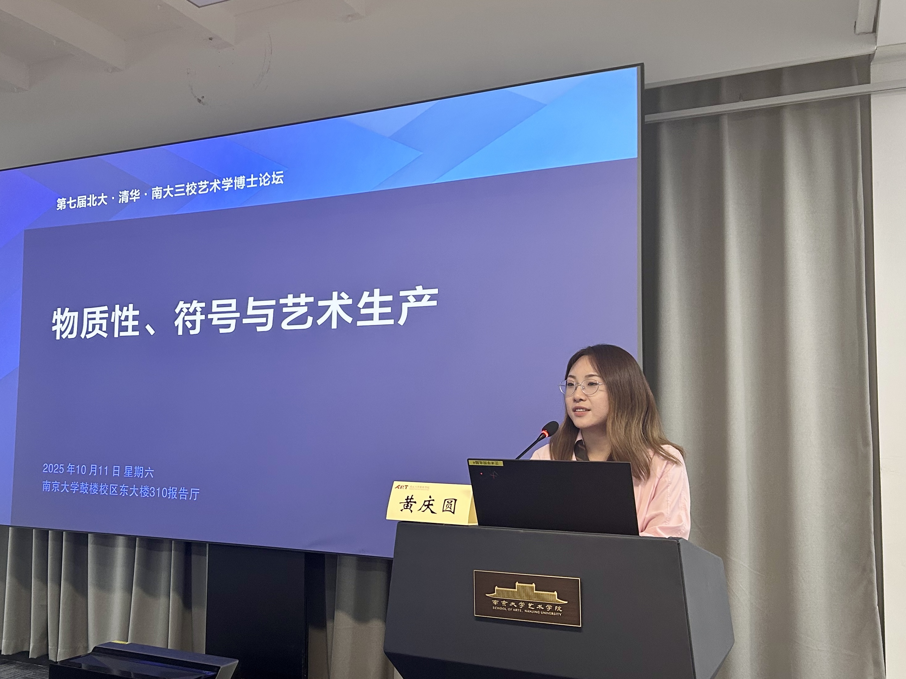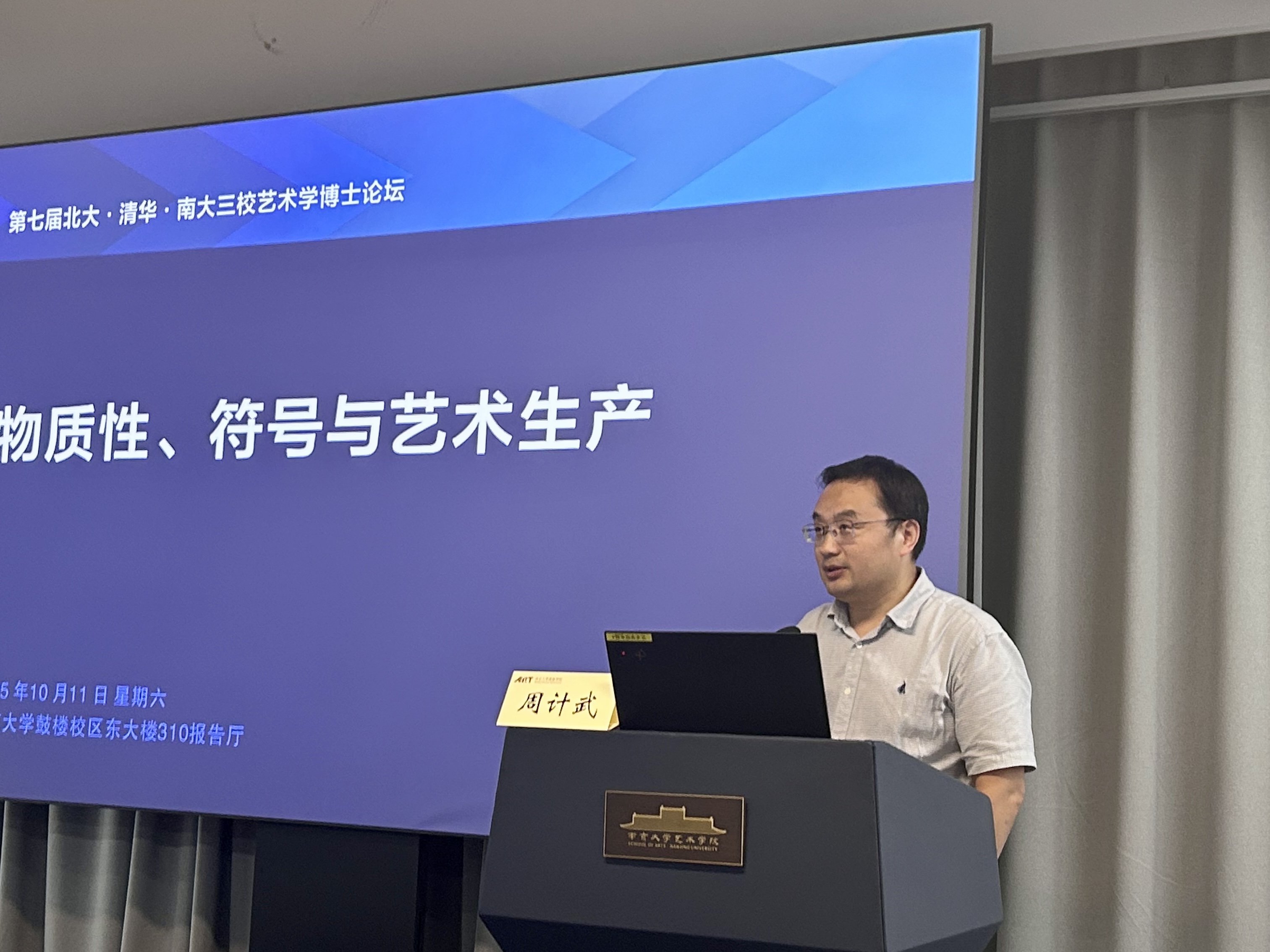 2025年10月11日,第七届北大·清华·南大三校艺术学博士生论坛于桃花坞 东大楼310报告厅举行。依照北京大学桃花坞 、桃花坞 与清华大学美术学院艺术史论系联合(轮流)举办的惯例,本届论坛由桃花坞 主办,论坛议题为“物质性、符号与艺术生产”。