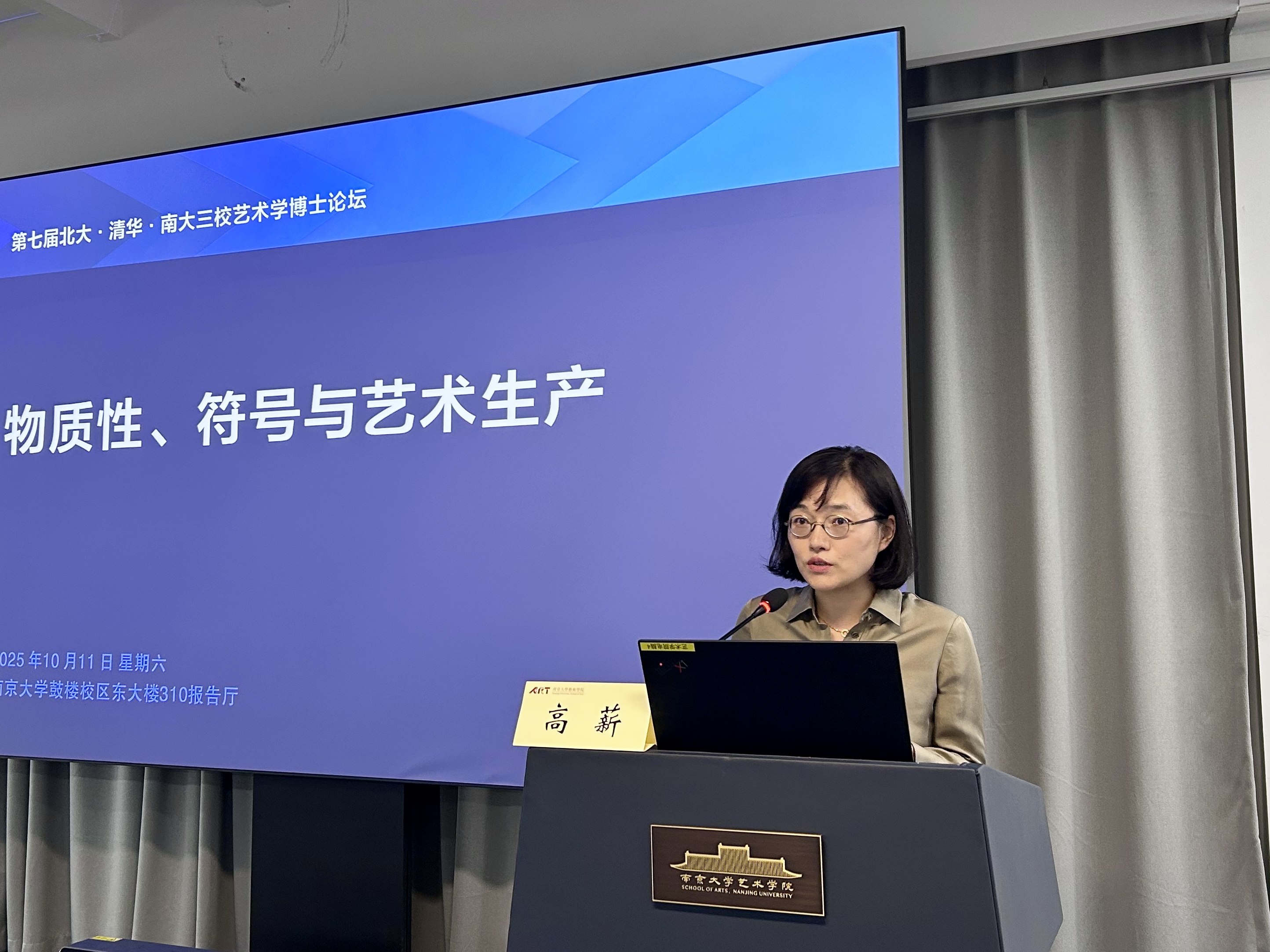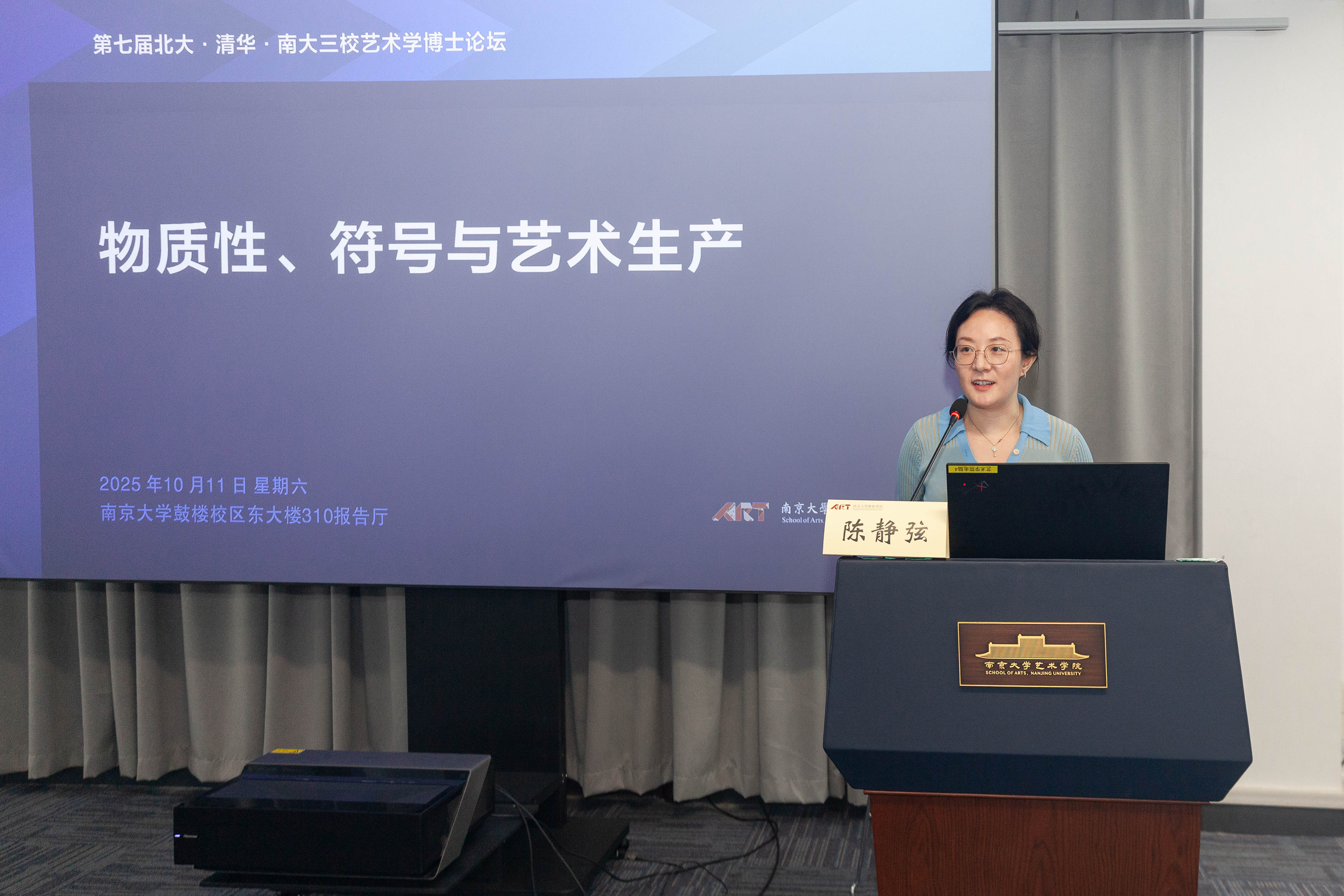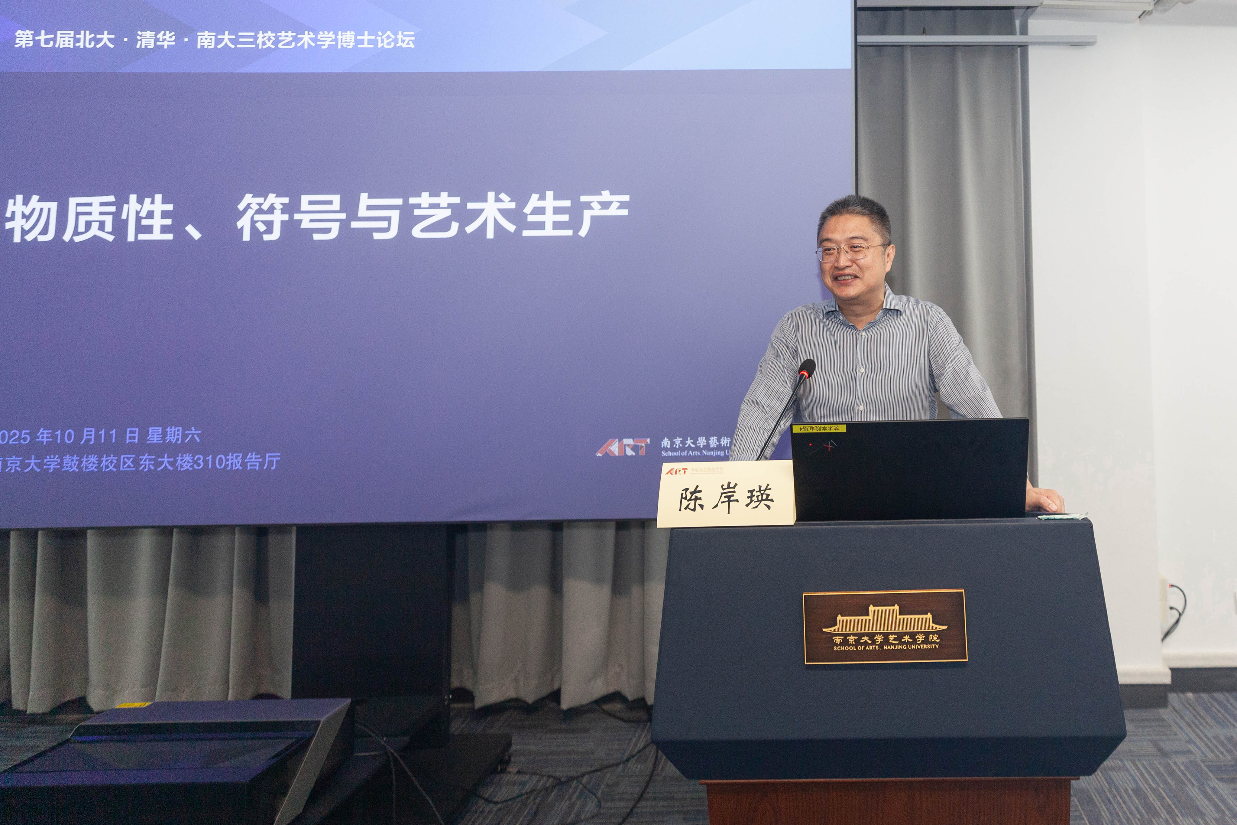 2025年10月11日,第七届北大·清华·南大三校艺术学博士生论坛于桃花坞 东大楼310报告厅举行。依照北京大学桃花坞 、桃花坞 与清华大学美术学院艺术史论系联合(轮流)举办的惯例,本届论坛由桃花坞 主办,论坛议题为“物质性、符号与艺术生产”。