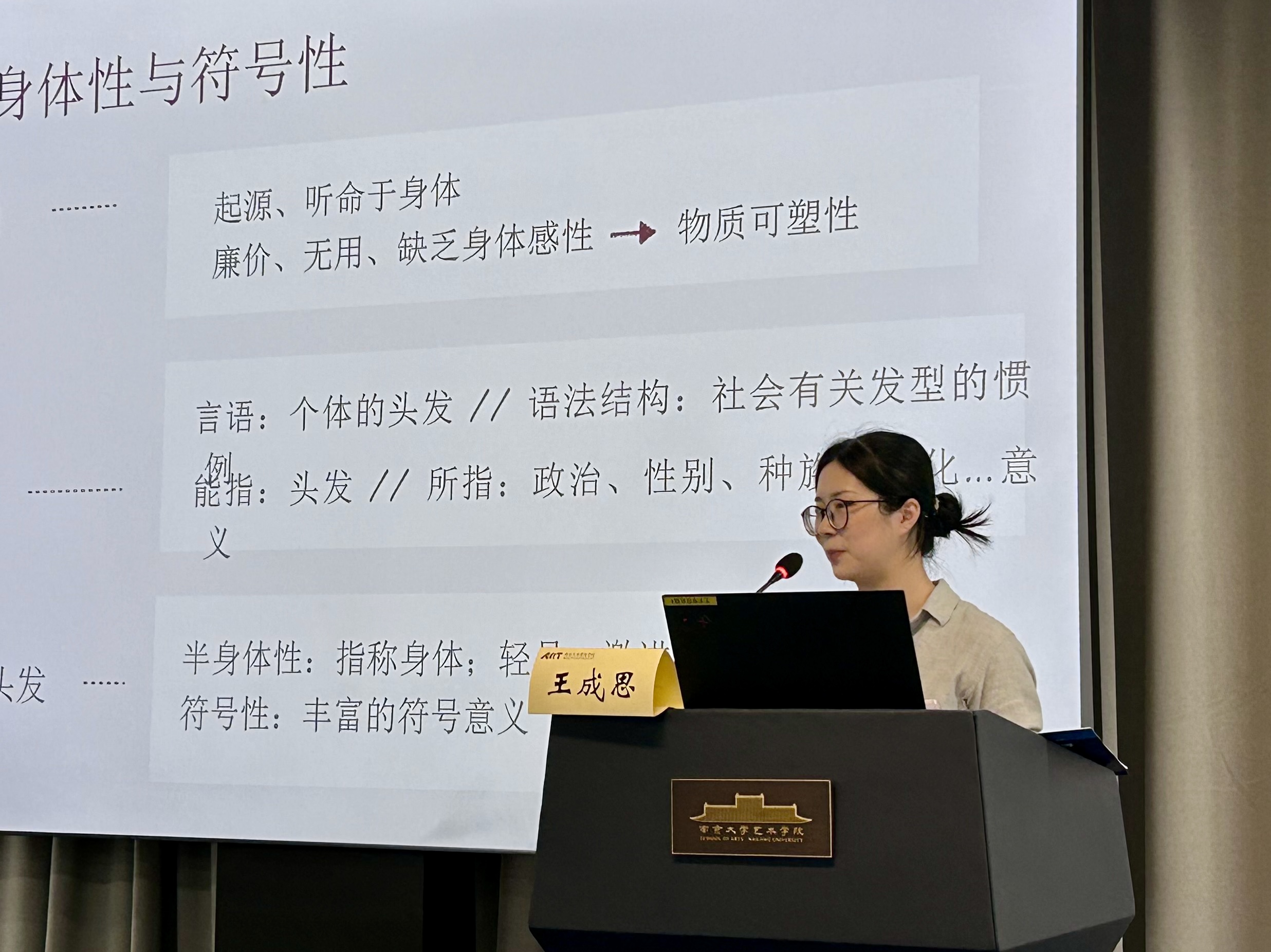 王成思以《物质身体的延伸与历史文化的能指:90年代以来中国当代艺术中的头发表达》为题,通过对谷文达、李海兵、施勇和肖鲁四位艺术家的头发作品进行的个案研究,揭示了头发的物质性与符号性为艺术家提供的独特表达可能。