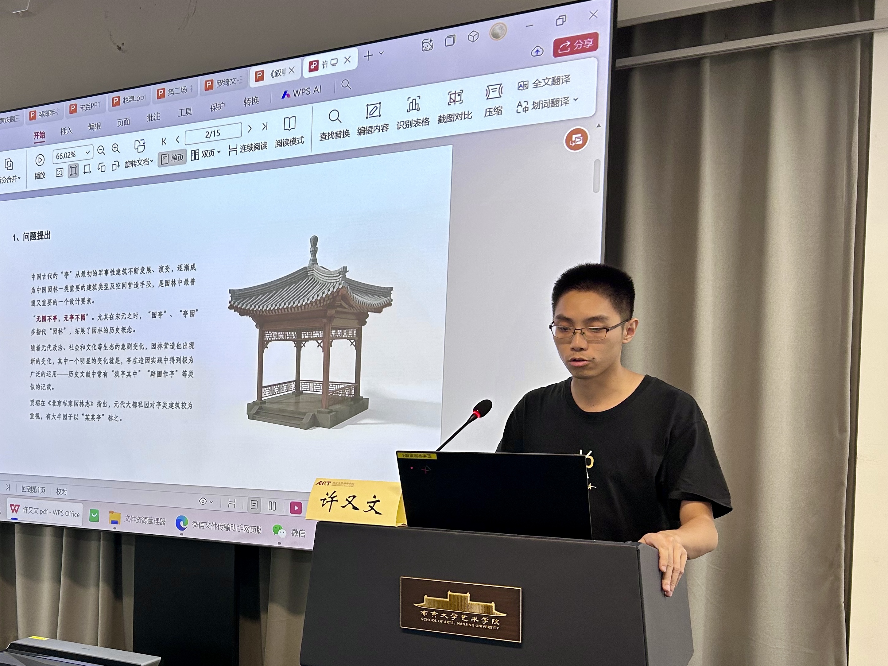 许又文以《景以亭出:元代园林“亭景”流变及其营造特征》为题,通过厘清元代园中“亭”建筑及其景致兴造的历史情状,试图指明元代以亭为主的园林造景和空间叙事方式推动了中国园林的空间流变,造就了独特的历史形态和观念内涵。