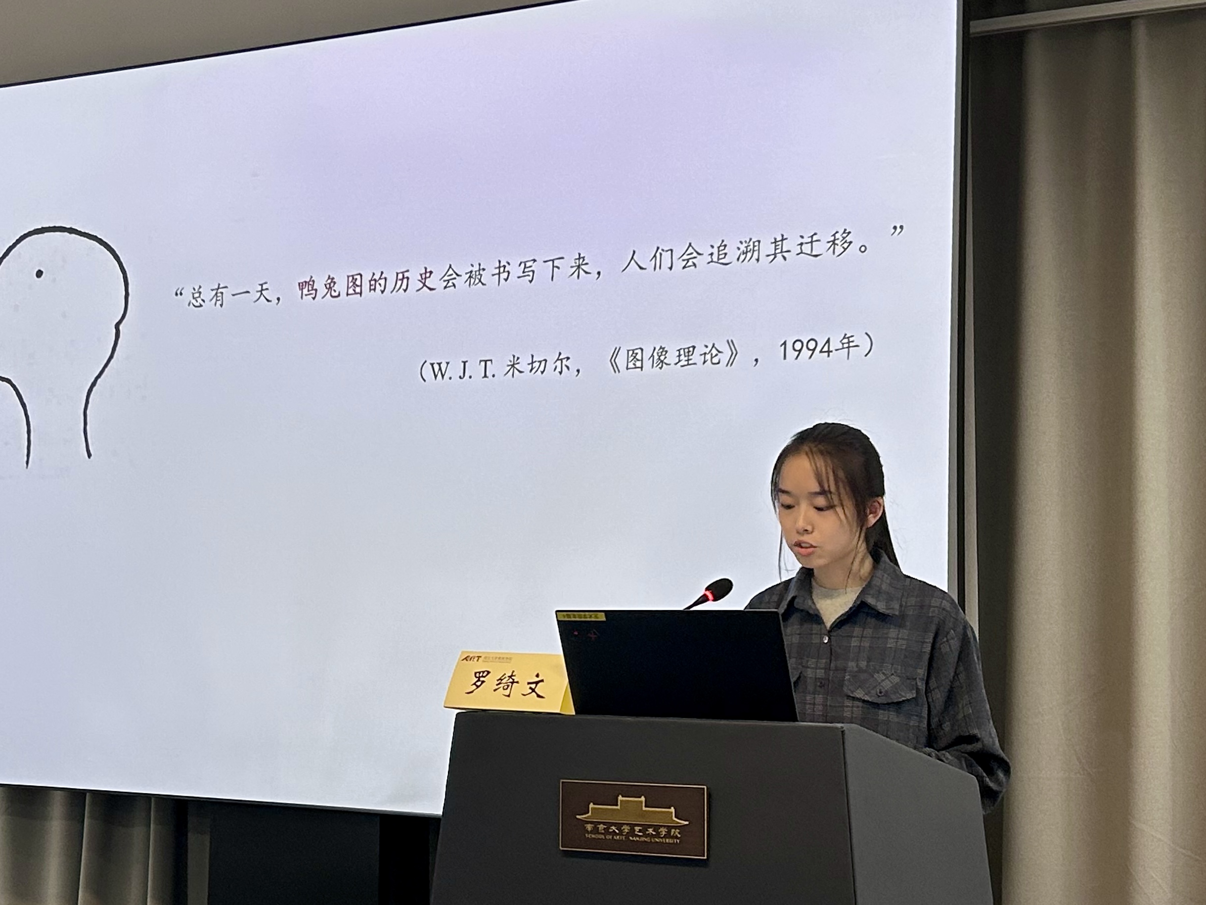 罗绮文以《“鸭—兔”图的跨域流动与意义生成》为题,通过追溯“鸭—兔”图在大众文化、心理与认知科学、哲学、美学、艺术理论与实践等领域的流通线索,旨在凸显“鸭—兔”图得以激发和容纳多重感知与思想实践的独特属性,从而加深对图像的媒介性、能动性以及理论潜能的认识。