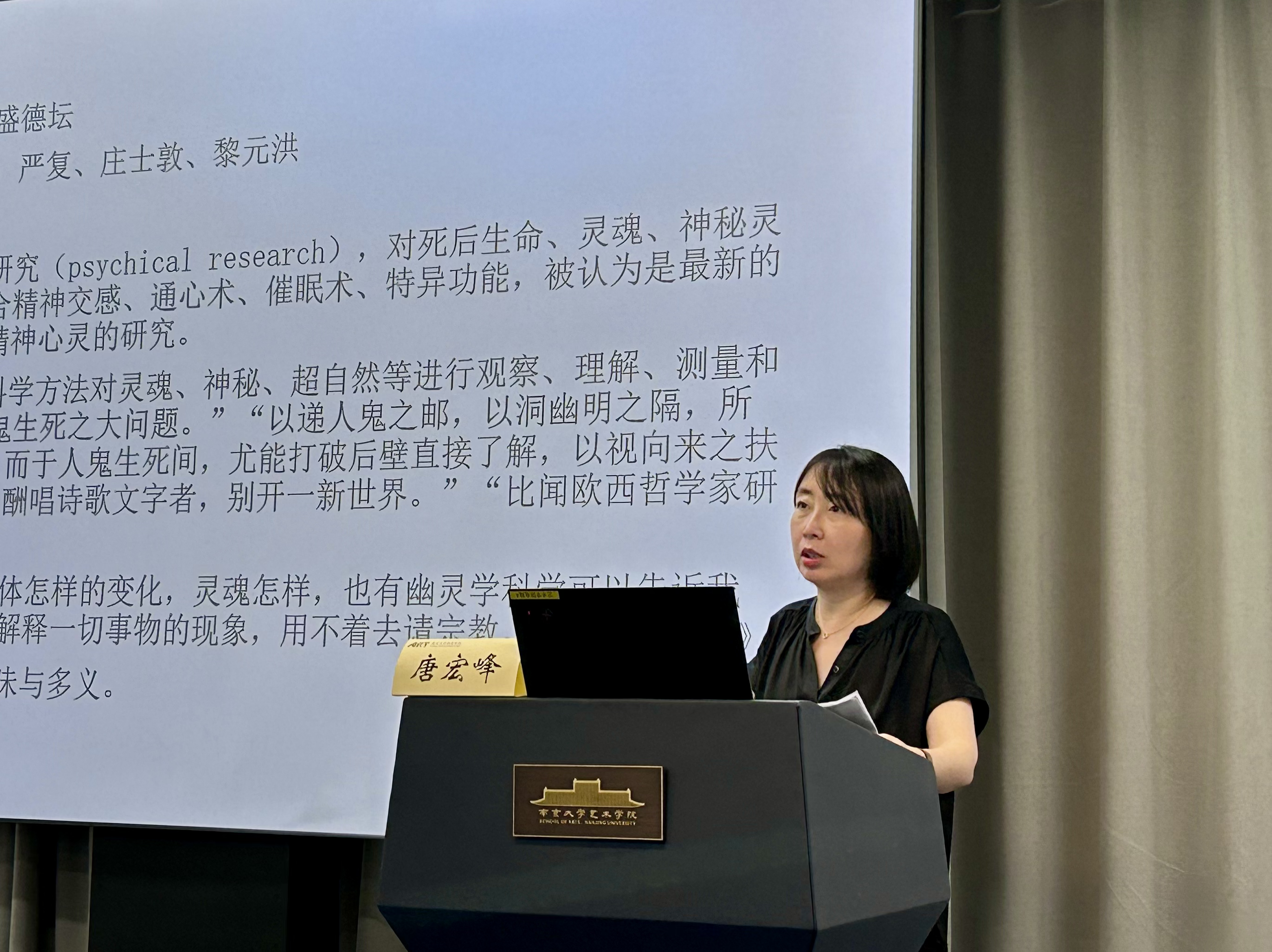 唐宏峰副教授以《灵媒与灵学——近代中国的灵魂摄影与道德实践》为题,围绕近代中国曾昙花一现的“灵魂摄影”现象展开论述。她从1918年《灵学丛志》杂志上一张为船难逝者拍摄的“灵魂照片”切入,揭示了这一实践背后的复杂历史图景。唐宏峰指出,“灵魂摄影”并非简单的封建迷信,而是与当时全球性兴起的“灵学”思潮紧密相关。这种实践常常与中国传统的扶乩仪式相结合,拍摄过程极为复杂,不仅要求精密的暗房技术,更对拍摄者自身的精神与道德状态有极高要求,认为只有内心纯净者才能激发底片感光,捕获“灵光”。这里的“光”不仅是物理之光,更是精神与道德能量的显现。最终她表明“灵魂摄影”提供了一条隐秘的图像分叉小径;而灵学,伴随着科学,也提供了一幅科学的异端面貌。它以一种宇宙媒介观,探究神鬼仙灵、人与可知或不可知的周遭世界的关系,再反身求诸己,内练精神心意,实现科学虚无之后的道德救赎。