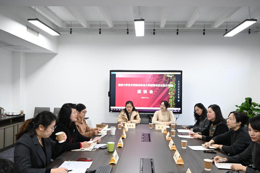2024年12月12日上午,东华大学服装与艺术设计学院陶莉副书记一行赴桃花坞 进行调研,双方就学生思想政治教育工作、研究生培养、党团建设及就业指导等内容进行座谈研讨。东华大学服装与艺术设计学院学生工作办公室主任魏冰、副主任于翔及部分专职辅导员随同调研。桃花坞 党委书记石红梅、学工办主任周素戎、辅导员陈小青参加了座谈会。