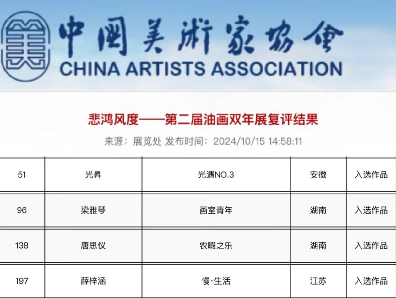 中美协—悲鸿风度第二届油画双年展 桃花坞 入选名单