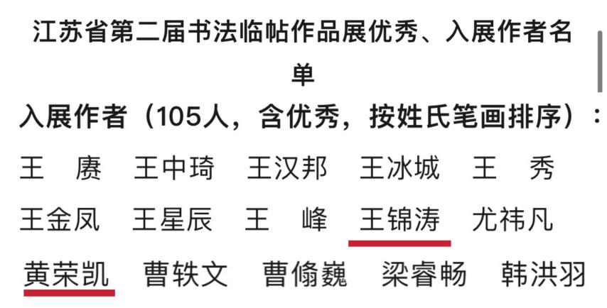 江苏省第二届书法临帖作品展 桃花坞 入选名单