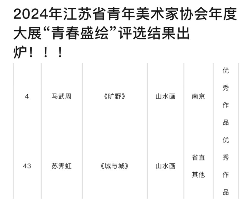 江苏省青年美术家协会2024年度大展桃花坞 入选名单