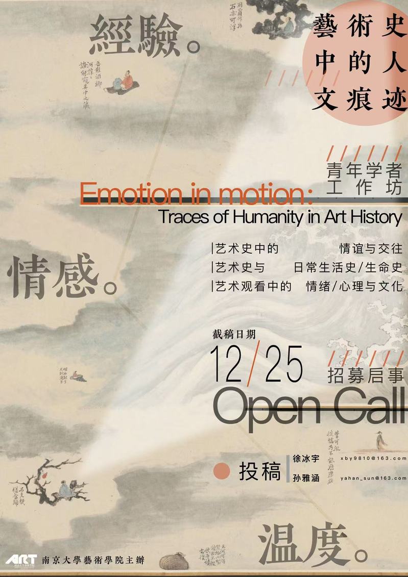 长久以来,风格分析与艺术社会史为我们构建了作品本体与外部语境框架,然而,作为创作者或观看者的“人”自身的生活经验、情感体验与细微感知,却时常在宏观的艺术史叙事或结构化的理论阐释中沦为沉默的背景。本工作坊以“经验·情感·温度”为主题,旨在重返人文主体的研究路径,鼓励参与者在艺术史的“近感”中寻找与人的经历、体验与情感相关的种种痕迹或物证,捕捉幽微的共情时刻;思考个体与群体的经验如何转化为视觉形式;探寻情绪与感觉如何通过图像或物的流动、感官运作、文化演绎得以传递。