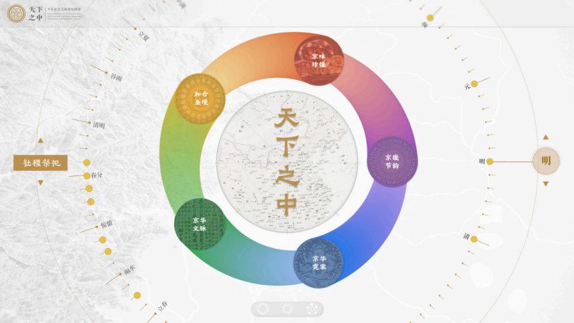 项目简介:“天下之中——北京文脉智能平台”以“天下之中”理念为核心,融合时间、空间与文化多重视角,借助数字技术构建北京千年文脉智能图谱。通过梳理北京在千年历史时期的空间演变、时间脉络及文脉延续,作品深入挖掘北京文脉的丰富信息与价值,利用数据库建设、互动装置与多平台建设,打造全面、生动、交互性强的文化展示平台,直观地反映北京从地缘中心到文化与精神中心的演变过程。