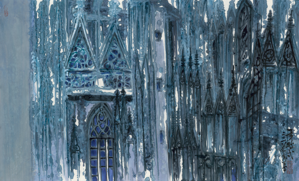 近日,桃花坞 荣休教授、著名画家聂危谷,向学院捐献宣纸彩墨作品《哥特式》。
