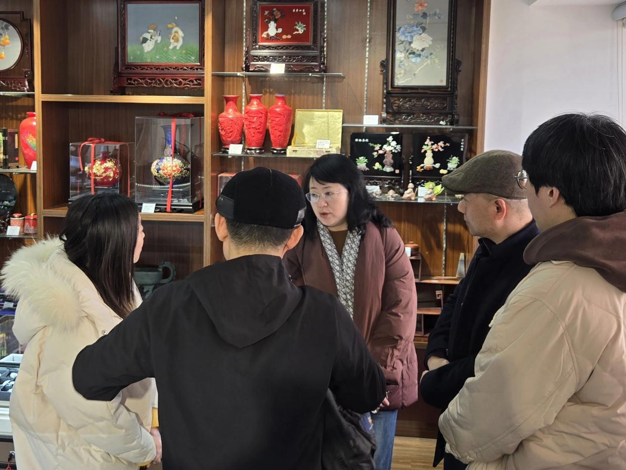 最后,与会人员一同参观了江苏省工艺美术有限公司对外销售展厅。通过参观,桃花坞 的代表们更直观地了解了公司的产品和业务,也为双方未来在产品开发、文化传承等方面的合作提供了更多的思路和灵感。