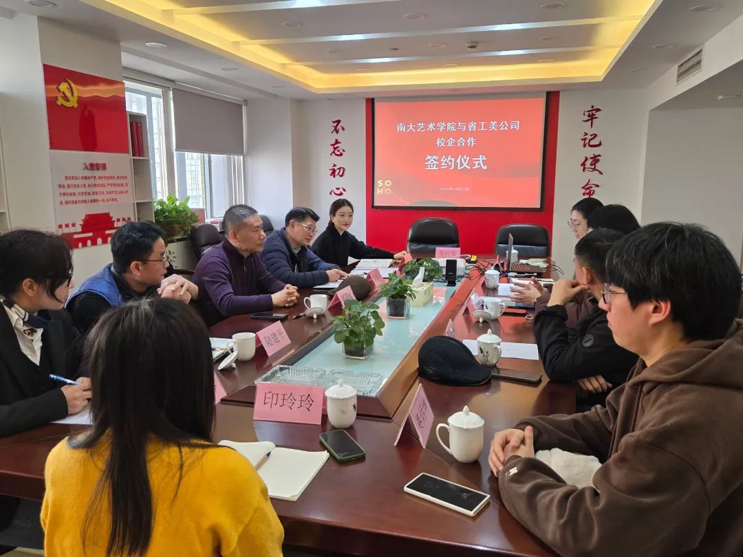 此前,在2024年10月29日的洽谈中,双方已初步达成合作建设“桃花坞 学生实训基地”等多项共识,此次讨论则进一步细化和完善相关协议内容。在与会人员的共同见证下,双方代表郑重地在合作协议上签字,标志着双方正式建立校企合作关系,携手共进,共同探索工艺美术产业的创新发展路径,充分发挥双方优势,实现互利共赢,为校企合作开启了新的篇章。