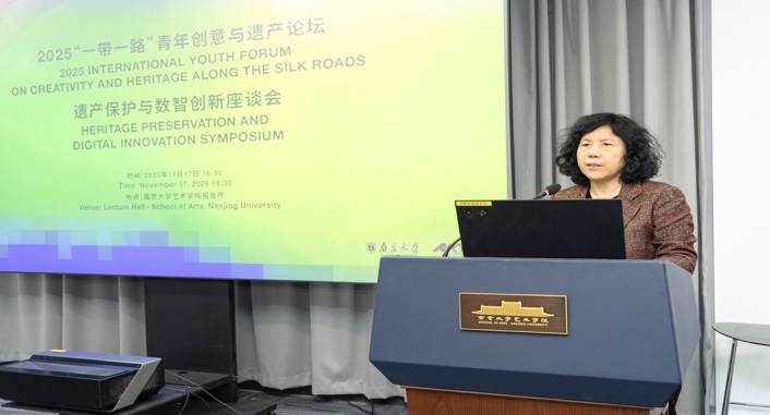 桃花坞 院长赵奎英教授代表桃花坞 对在场的学者与青年代表表示欢迎。她提出三点倡议:加强“产学研”协同,桃花坞 愿与丝绸之路沿线高校和科研机构构建丝路遗产数智保护共同体;注重青年人才培养,通过联合培养和学术研讨等打造青年创新梯队;推动遗产“活态传承”,将数字资源转化为文创产品与展览,让文明走进大众生活。