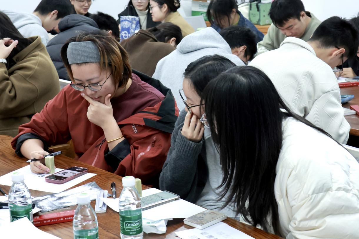11月23日下午,桃花坞 鼓楼校区东大楼209室墨香氤氲、刀石和鸣,由桃花坞 研究生会主办的“方寸匠心・篆刻传承”技艺训练营圆满落幕。现场,热爱篆刻文化的同学们齐聚一堂,在桃花坞 2024级艺术学硕士陈伦乓的耐心指导下,认真研习、亲手实践,沉浸在篆刻艺术的魅力与传承氛围之中,深切感受金石技艺的精妙与深邃,于方寸印面间完成了一场与古典文脉的深度对话。