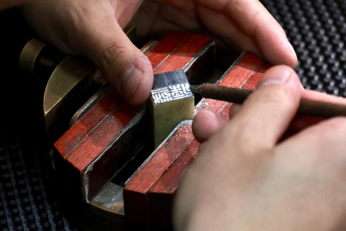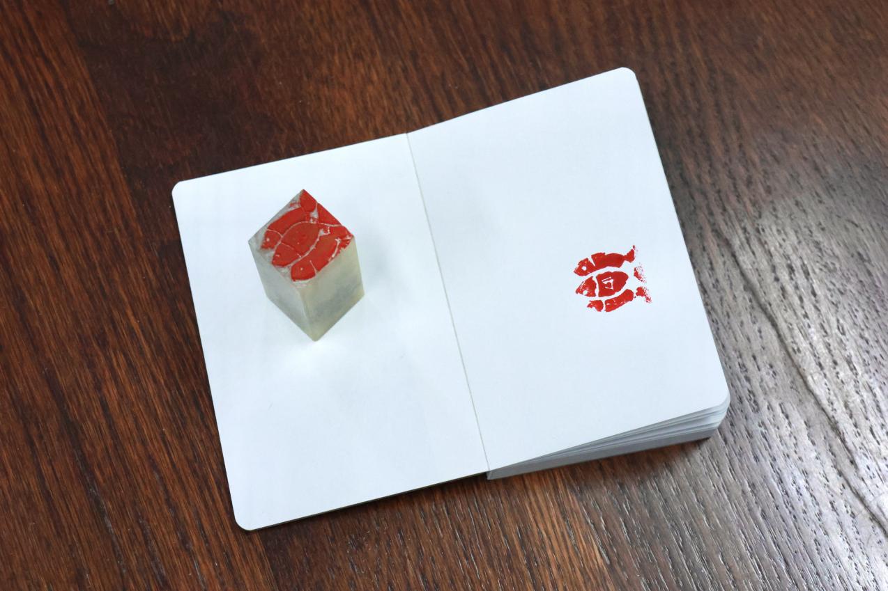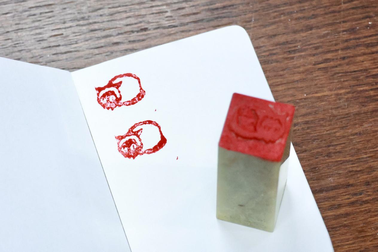 实操体验环节,现场备齐刻刀、印石等全套工具,零基础的同学们在老师的细致指导下逐步上手。参与者们精心挑选设计了富有个性的字体、字形或图案,通过对刻刀的熟悉与驾驭,各自创作出一面面富有特色和韵味的印章。不少同学表示,在主讲人的演示与自己的钻研体会之间,深刻的领会到了篆刻艺术的瑰丽与荣耀,以及其千年不坠的美学密码。当一方方带着个人印记的篆刻作品新鲜出炉时,大家脸上都洋溢着满满的成就感,纷纷展示自己的“第一方印”,分享创作过程中的感悟与收获。