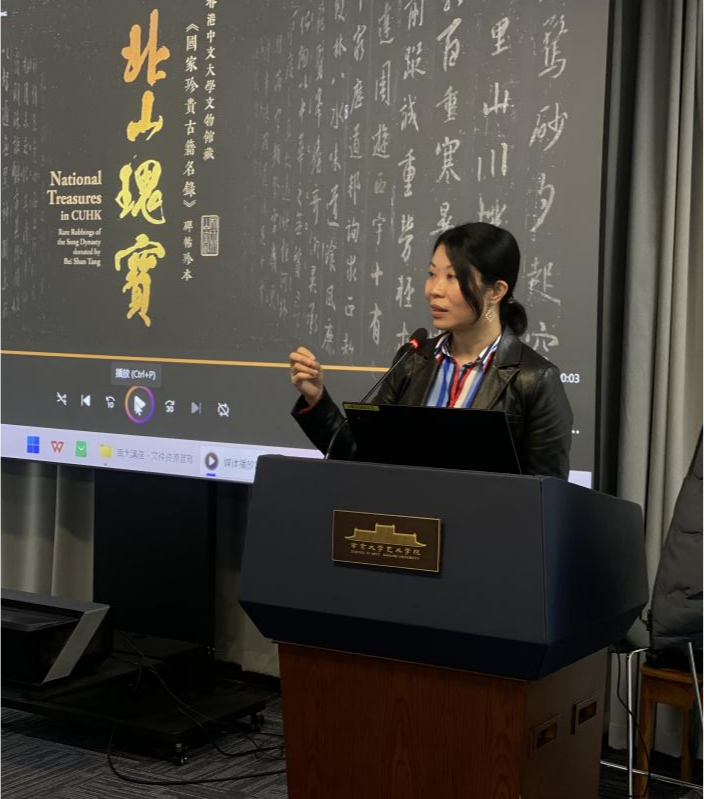 2025年12月12日,香港中文大学文物馆何碧琪研究员应邀来院作学术讲座,主题为“金石学兴起对清代书法史影响的思考”,讲座由黄厚明教授主持。讲座伊始,何老师指出,本次讲座延续了她自硕士至博士阶段持续关注的问题:金石学虽在宋代已蔚为大观,为何碑学书风的勃兴却独独发生于清代?清代金石学如何推动碑学兴起,并引发对书法传统的认知变革?这一问题意识贯穿讲座始终,亦体现出艺术史与社会史、思想史及政治文化史相结合的研究视野。