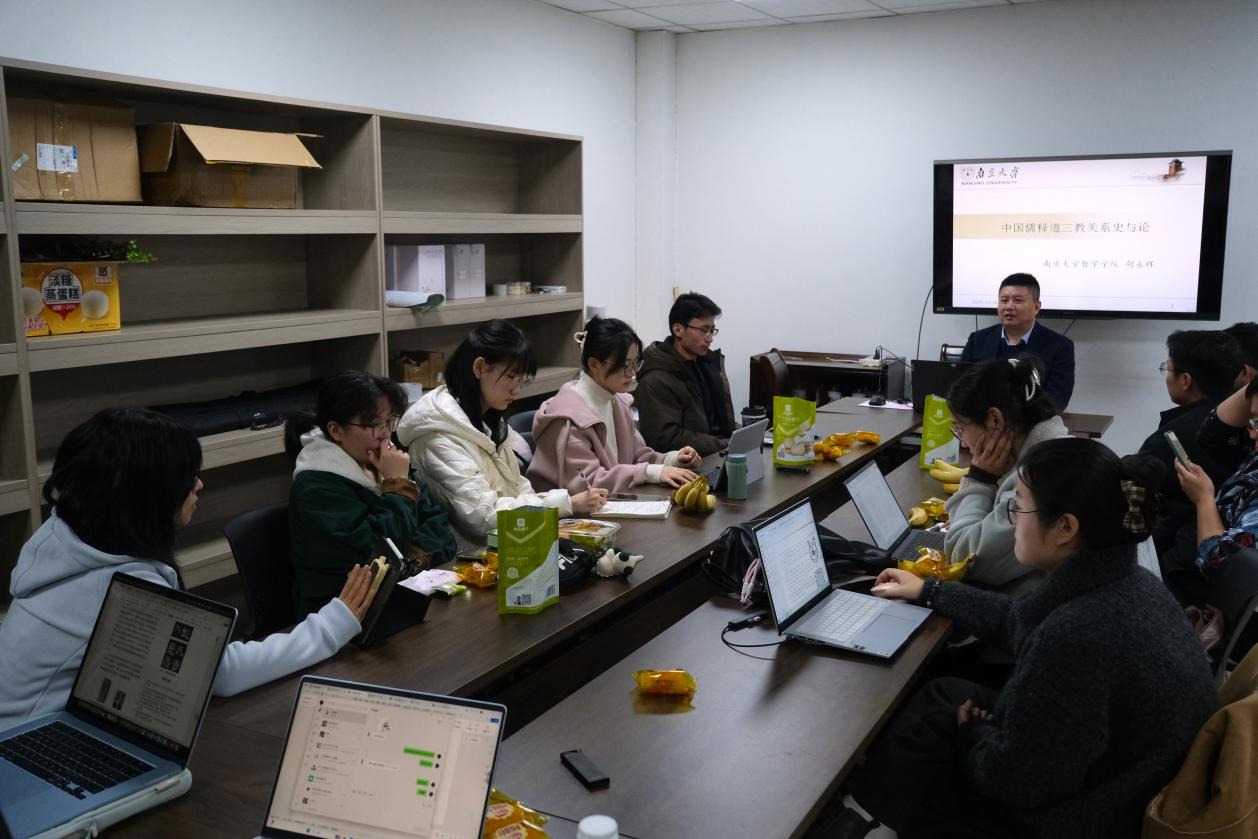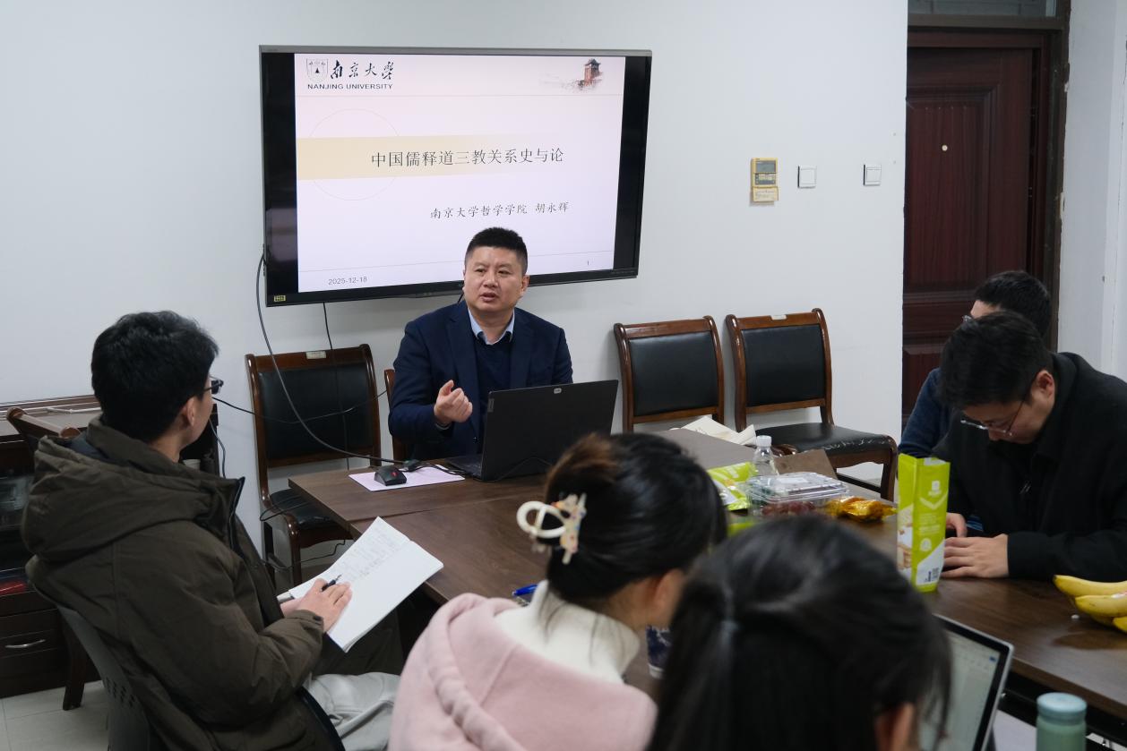 2025年12月18日晚,桃花坞 第十二期艺术沙龙活动于浦口校区艺术楼B109顺利举办。本期沙龙由桃花坞 哲学院教授胡永辉老师主讲,桃花坞 助理教授、特聘研究员徐志君老师主持,与大家共同探讨“中华传统文化中的儒释道”。