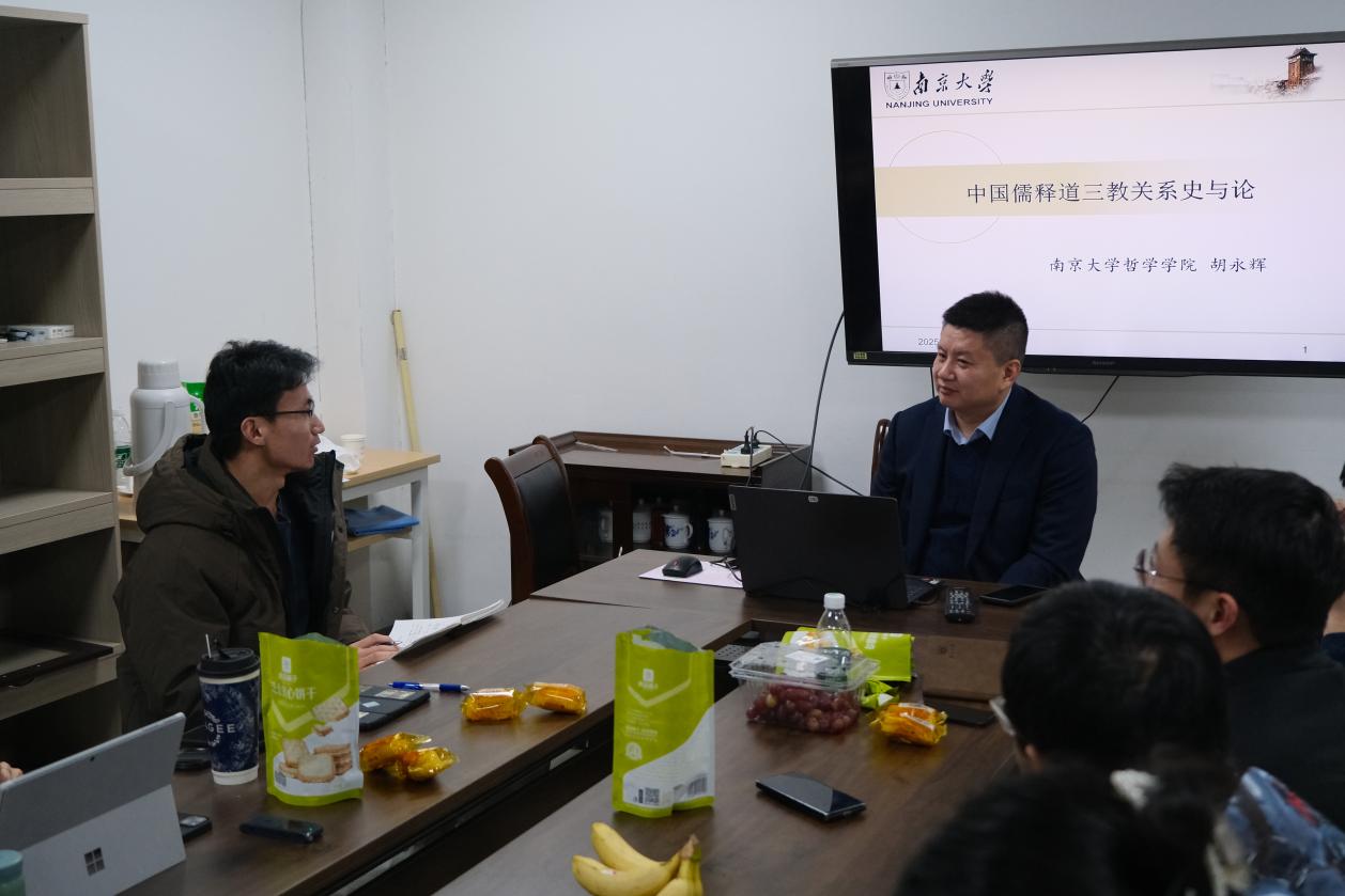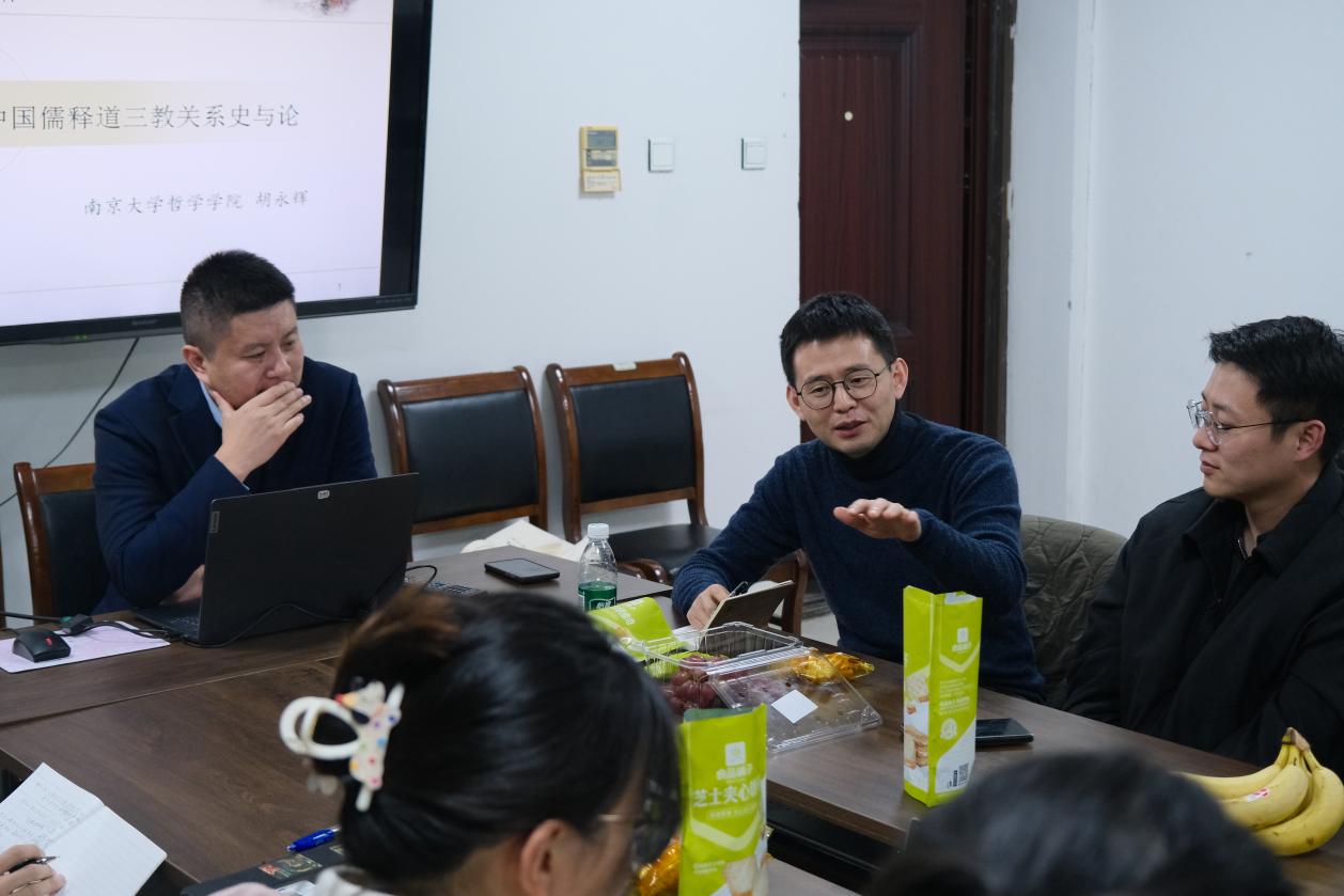 沙龙伊始,胡永辉老师介绍了自身研究方向,主要聚焦于中国佛学与与儒、释、道三教关系等领域。他首先指出,三教关系的演变和融合,既是文明互鉴的过程,也是理解文化交流的重要线索。这一课题兼具研究方法与研究对象的双重属性,对中国传统思想文化的演进产生了深远影响。