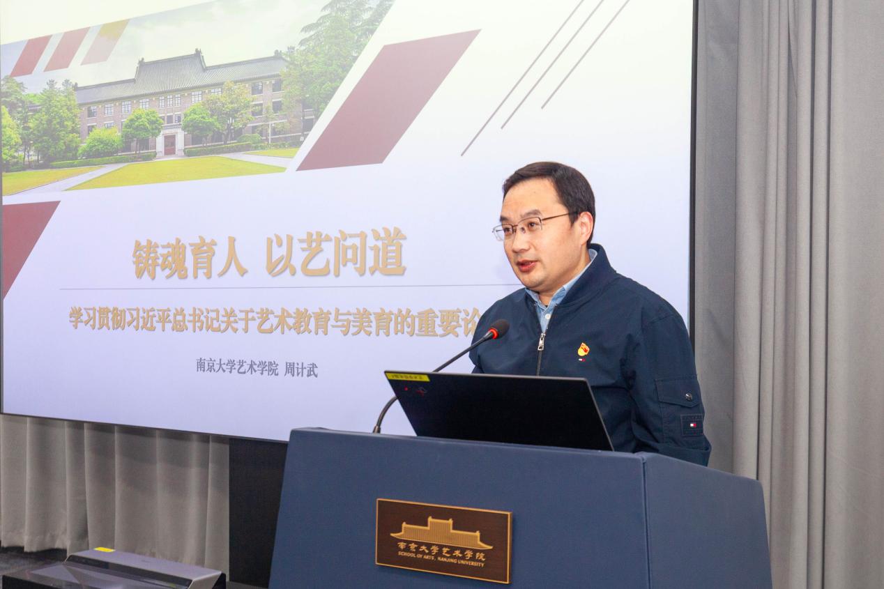 1212日,桃花坞 党委书记周计武《铸魂育人 以艺问道——学习贯彻习近平总书记关于艺术教育与美育的重要论述》专题报告。他指出,党的二十届四中全会对建设文化强国、推进教育高质量发展作出重要部署,艺术教育与美育在新时代文化建设和人才培养体系中具有基础性地位。围绕习近平总书记党的十八大以来关于文艺、美育和文化传承发展的系列重要论述,他从艺术教育与美育的文化使命、根本目的、政治立场、实践路径和建构中国自主知识体系等五个方面进行了系统讲解。他表示,文化是民族的精神命脉,艺术教育与美育是铸魂育人的基础工程,在服务党和国家事业发展、推进中华民族伟大复兴中承担着重要使命作为学校本科生美育课程体系的主要实施单位,桃花坞 要进一步强化责任担当,持续深化美育教学改革,推动美育真正融入育人全过程。他强调,立德树人是高校人才培养的中心环节,要坚持育人和育才相统一美育应以“浸润式”方式提升学生的审美境界与精神品格,学院教师必须不断提高思想认识切实推进美育教学改革落地见效坚持以人民为中心努力在教学、科研和艺术创作中守正创新、打造精品力作积极构建中国自主艺术知识体系主动回应时代命题和现实关切,以专业力量提升文艺作品的精神高度和文化品质,更好反映人民心声、展现时代气象。