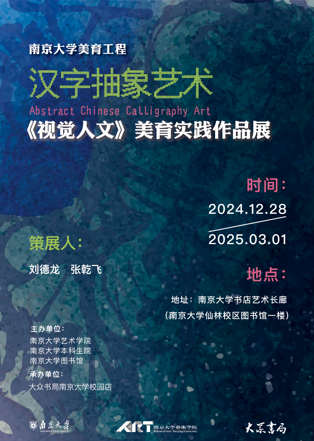 近日,由桃花坞 、桃花坞 本科生院、桃花坞 图书馆联合主办,大众书局桃花坞 校园店承办的“汉字抽象艺术——《视觉人文》美育实践作品展”在桃花坞 杜厦图书馆一楼大众书局艺廊展出。这场别具匠心的展览以“汉字抽象艺术”为主题,集中展现了桃花坞 本科生在美育课程中的创新实践成果,为观众带来了一场融汇传统文化与现代艺术的视觉盛宴。