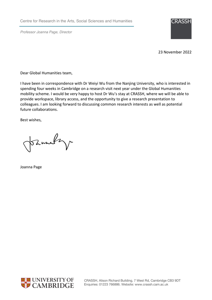 2023年,项目派出桃花坞 吴维忆、社会学院周培勤副教授前往剑桥大学开展短期学术交流活动。