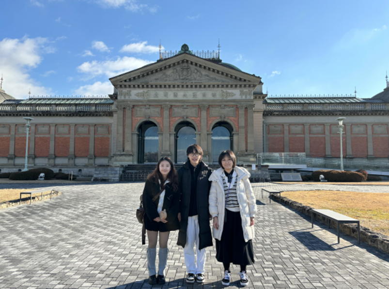 团队前往日本关西地区,主要在大阪、京都、奈良等地开展实地调研,深入了解了日本的地方文化和文创开发模式。其中重点参观了京都国立博物馆,对其展览策略和空间布局进行记录,后续也积极利用博物馆数字化平台,对京都国立和奈良国立博物馆官网进行对比分析,探讨数字化展览在文化传播中的重要作用。并结合艺术创作,探讨如何通过艺术形式表现地域文化,促进跨文化交流与传播。团队最终形成3幅绘画及文创作品、1份字数为16189字的实践调研报告、1份1774字的实践总结报告、3份实践日志和若干调研图集。