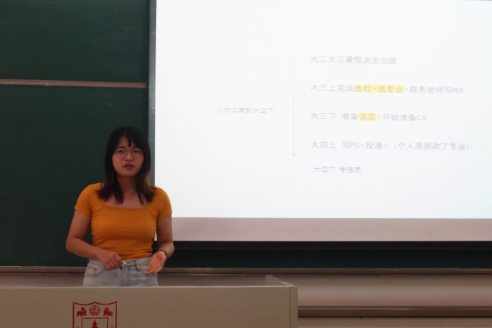 来自历史学院的李文睿同学即将去英国攻读人类学专业。她分享了语言考试的心得以及如何通过个人经历结合学校要求构思文书。语言是申请出国的硬性条件,应当及早规划,调整心态;而文书方面应当找到自己真正的兴趣点,并和对方项目要找的目标学生的特点相匹配。无论是cv(个人简历)还是ps(个人陈述),都应当由自己起草和最终定稿。一定要认真阅读有关项目的所有内容。
