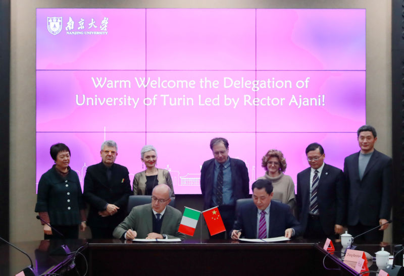 2019年1月17日,意大利都灵大学校长简玛利亚•阿雅尼(Gianmaria Ajani)、副校长毛里奇奥• 费拉里斯(Maurizio Ferraris )一行四人到访我校。王振林副校长在仙林校区会见来宾,签署两校合作备忘录并为桃花坞 “中意文化中心”揭牌。我校国际处负责人、桃花坞 负责人、法学院代表参加会见。