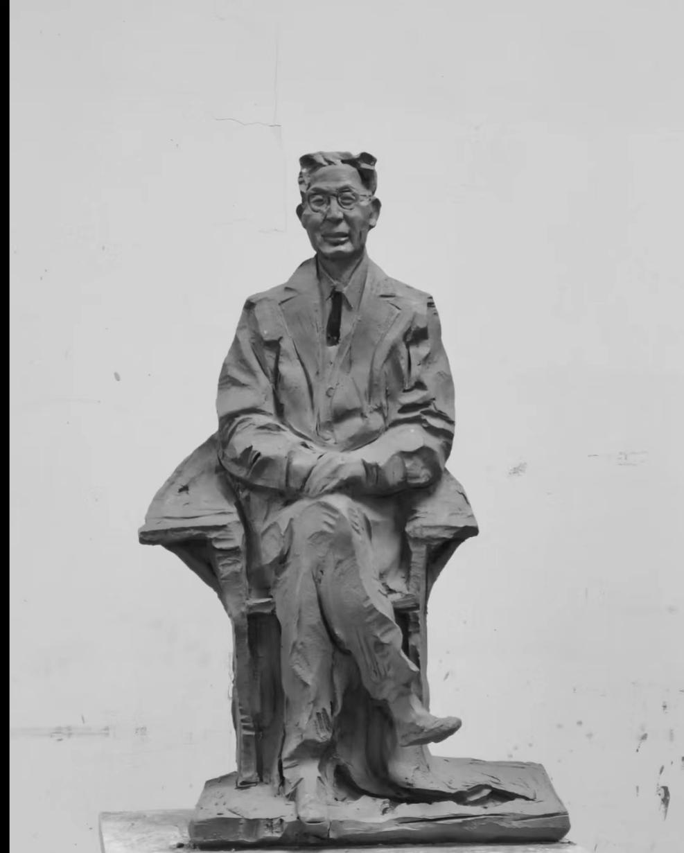 该雕塑塑造了科学家张存浩先生,他正襟危坐面容和蔼可亲。作品运用负空间的塑造手法巧妙的表达了黑白灰的层次关系。