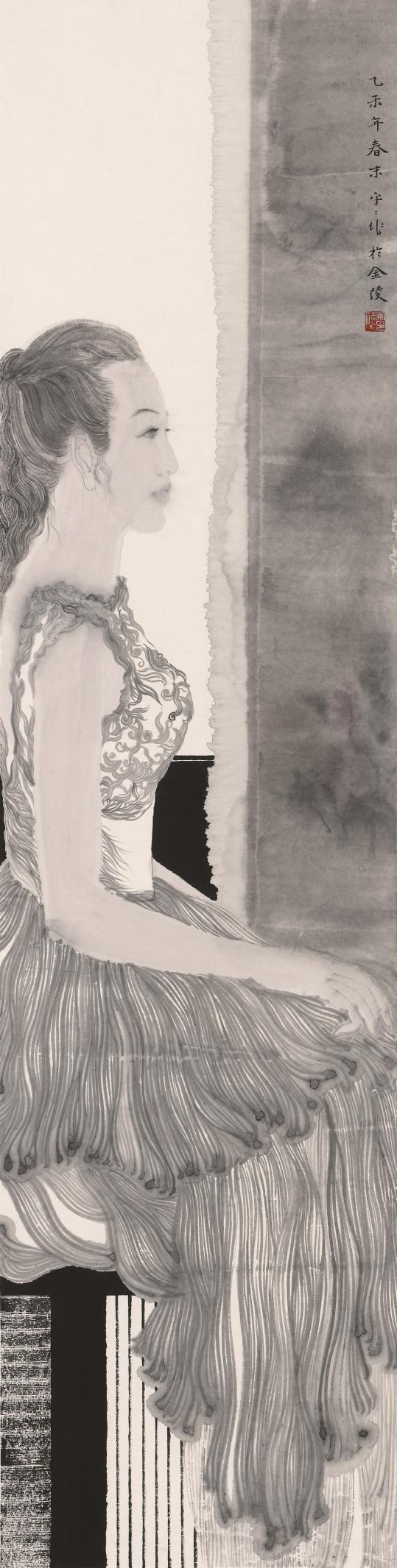 安萍萍 《凝》 纸本水墨 36cm×140cm 2014年
