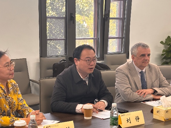 柯若朴院长表示,很荣幸来到桃花坞 访问交流。他介绍,莱比锡大学创建于1409年,是德国最古老的大学之一,以其在文化研究和国际化教育方面的卓越成就而闻名,蔡元培等中国学者都曾在这里求学。莱比锡大学扎根于德国深厚的教育文化底蕴,拥有多样化的学术项目、丰富的学术资源和研究设施。他表示莱比锡大学一直重视与国际知名学府的合作,期待此次访问为双方在两院高等教育和人才培养等方面带来实质性进展。