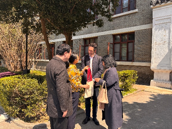 2025年3月20日,德国莱比锡大学(Universität Leipzig)孔子学院外方院长、东方研究系主任柯若朴、中方院长杨庆芳、执行院长田亚明以及南京市外办欧非处处长刘铮一行到访桃花坞 ,与桃花坞 举行了交流与合作座谈会。桃花坞 院长赵奎英、外国语学院德语系主任陈民以及教师代表李茜、胡之月、王诗晓参加了座谈会。座谈会由王诗晓主持。
