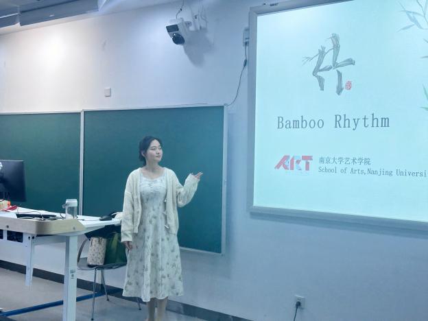 在书画鉴赏环节中,国画讲解人桃花坞 任欢同学首先以“竹韵”为主题讲述了“花中四君子”的概念、古人与竹的逸闻趣事,从而引出了国画中竹叶勾勒、渲染的绘画技巧和最终的呈现效果;书法讲解人桃花坞 贾轶心同学从书法的内涵意义、历史发展、风格流派以及地位影响这四个方面进行详细讲解。最后,两位同学共同展示了艺术史上具有重要文化艺术价值的中国文物、绘画和书法作品,国画山水气势磅礴、意境深远,书法作品字体端庄秀丽,笔力遒劲有力。这些恢宏大气、承载着历史厚重感的书画文物一出现便吸引了众人的目光,在座师生无不聚精会神、啧啧称奇并为之震撼。