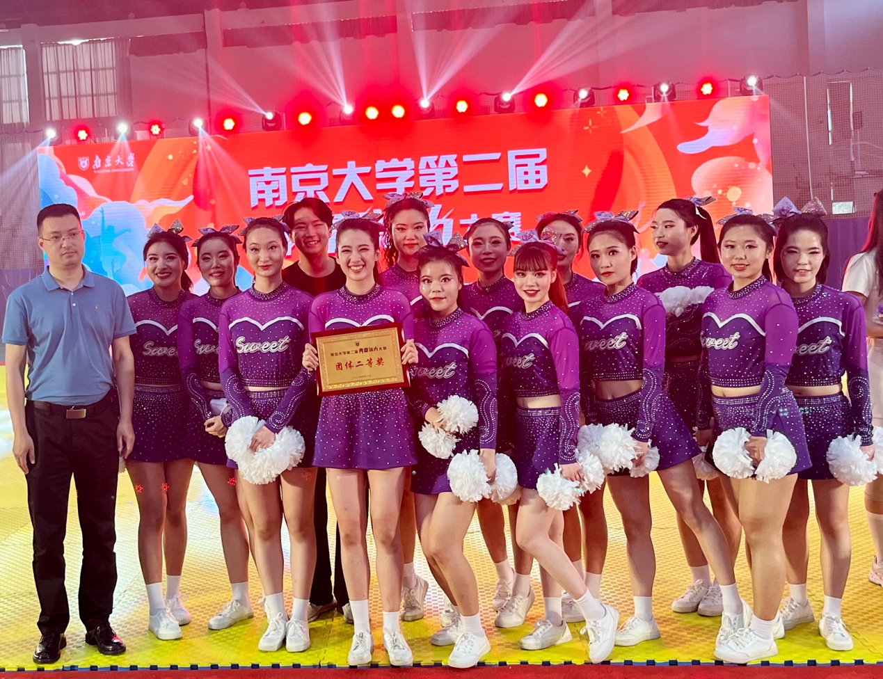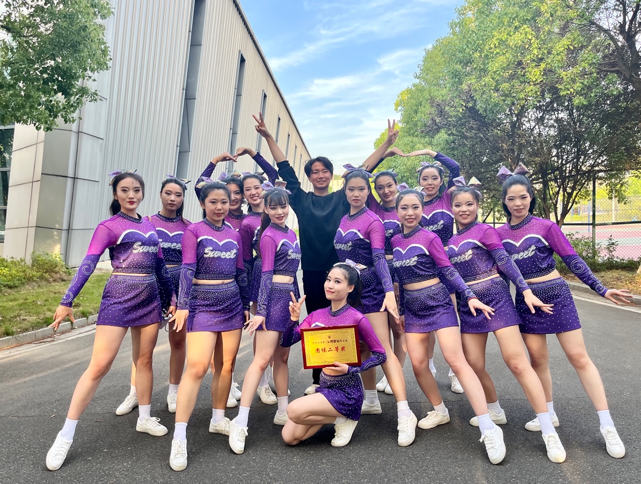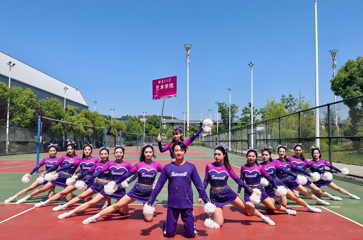 在备赛阶段,桃花坞 积极响应、精心组织、认真准备。在4月底成立由张雨昕、刘航、高旖婧、唐思仪、宋洁、李卓蔚、沈迅、昂鑫月、潘敏谦、郑喻心、麦诺文、刘怡、朱怿、黎贝,14名研一同学组成的啦啦操队,经过近一月40余次的刻苦训练,一次次的尝试终于蜕变成蝶,一次次的磨合终于合作无间,她们向阳奔跑,一身晴朗,青春狂飙。最终收获团体二等奖的喜人成绩。他们与活力碰撞,与艺术同频,与青春共振,于舞台闪亮,他们诠释了青春的桃花坞 ,写就了桃花坞 的青春!