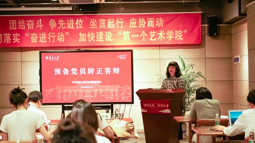她对参会的预备党员和积极分子提出了四点要求,一是进一步提高理论素养,把对党的创新理论的学习和中华优秀传统文化相结合,在增强文化自信和讲好中国故事上多下功夫,要在加强党的理论研究阐释上贡献智慧,在艺术创作中要以人民为中心,多处优秀作品;二是进一步提高政治素质,真正做到深刻领悟“两个确立”的决定性意义,增强“四个意识”,坚定“四个自信”,做到“两个维护”,并在学习和工作中做好对理论学习成果的转化;三是进一步提高能力本领,树立干事创业的“精气神”,自觉践行社会主义核心价值观,贯彻党的群众路线,心怀国之大者,在铸就社会主义文化新辉煌的新征程中展现作为;四是进一步提高党员修养,严守党的政治、组织、廉洁、群众、工作、生活纪律,做到尊师重教、学术诚信。