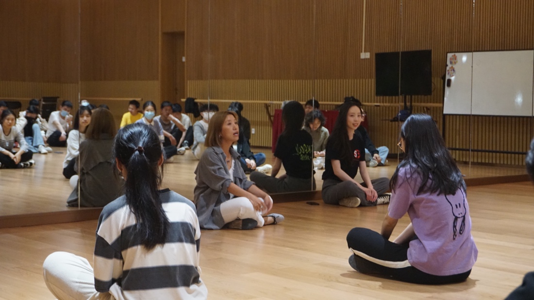 参观结束后,江苏大剧院专业教师为师生安排了妙趣横生的“经典音乐剧工作坊”,学生们从热身活动、学习《芝加哥》选段以及与剧院工作人员畅聊戏剧等环节中体验到戏剧真正的魅力。