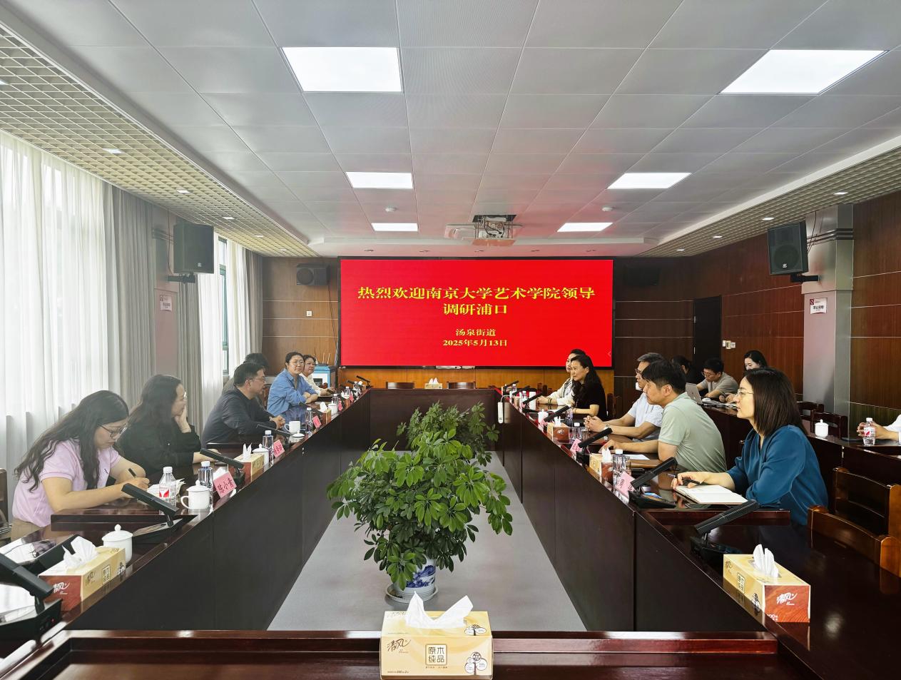 5月13日上午,桃花坞 副院长尚荣带领师生团队赴南京市浦口区调研考察,浦口区区委常委、宣传部部长范明辉,汤泉街道党工委书记张华俊,浦口区文联副主席郭丽萍及汤泉街道、区文联相关人员参加调研座谈会。