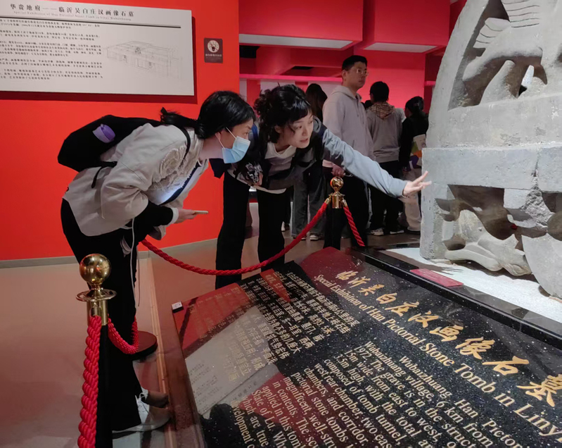 图(1)师生一行参观临沂市博物馆汉画像石雕专题陈展
