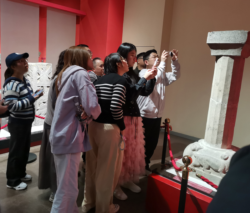 图(4)同学们被浑雄而精致的墓础柱吸引住了