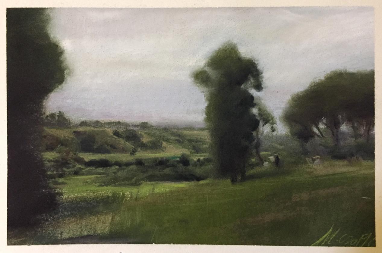 崔明非 《右玉风景二》35.5x23cm 纸本色粉 2019年