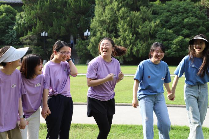 随后,队伍们在主持人张雨昕、姚越、刘航同学的带领下来到东大楼草坪前,正式开始了运动趣味赛。比赛采取积分制,各组通过参与各项赛事进行积分,按整组积分高低顺序发放相应奖品。现场举办了多场精彩的趣味运动项目,如济济艺堂(人物 quiz)、艺五艺十(一块五毛)、艺触即发(木头人)、两位艺体(两人三足)、艺孔之见(我的组长在哪里)、艺言为定(趣味毽子)、别具艺格(趣味跳绳)和艺诺千金(趣味拔河)等。每个队伍都充满热情地展现自己的实力,积极参与其中,高呼口号,挥洒汗水,充分展现了桃花坞 师生之间紧密的团结互助精神。整个运动会现场洋溢着欢声笑语和青春活力的气息,让人感受到了大家庭的温暖和凝聚力。