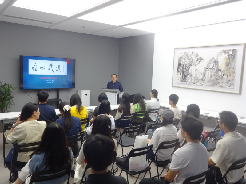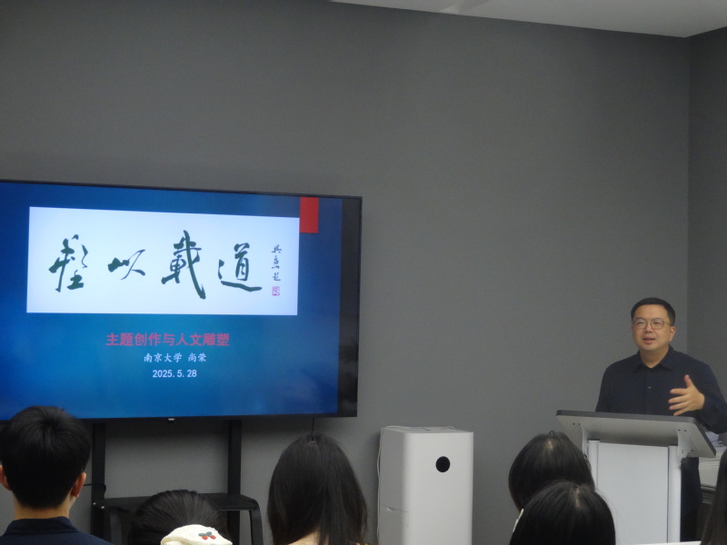 参观结束后,桃花坞 副院长尚荣教授以《塑以载道》为题,在研究所会议室为毕业生党员讲授专题党课。尚荣教授以雕塑艺术的历史文脉与南大担当为核心,从三江师范学堂的百年积淀讲起,回溯桃花坞 雕塑艺术研究所自1998年由吴为山教授创立以来,如何以“诚意正心”的治学态度,将南大校训精神与家国情怀融入艺术创作;并以习近平总书记给留学归国青年学者的回信为指引,结合《点亮乡村女孩人生梦想的优秀人民教师—张桂梅》《我国自动化科学技术开拓者之一—陆元九》等“七一勋章”获得者经典雕塑案例,强调新时代艺术工作者应“胸中有大义、心里有人民、肩头有责任、笔下有乾坤”,既要锤炼精湛技艺,更要坚守艺术初心,让作品成为“记录时代、服务人民、引领风尚”的精神载体。