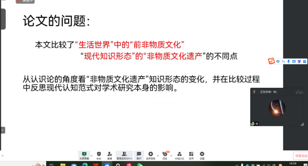 在专题讲座中,陈静副教授从艺术的媒介、艺术的传播、艺术作为传播的工具载体和方式以及跨媒介艺术与艺术的跨媒介传播四个方面,讨论了人工智能时代艺术的传播与作为媒介的艺术问题。王咏副教授在讲座中比较了生活世界中的非物质文化与现代知识形态中的非物质文化遗产观点,从认识论角度讨论了非物质文化遗产知识形态的变化,并在比较过程中反思现代认知范式对学术研究本身的影响;刘德龙副教授通过对《芥子园画传》的分析,指出《芥子园画传》初集的深刻内涵与价值,并对其在当代山水画学习与研究的意义与价值作出了探讨。