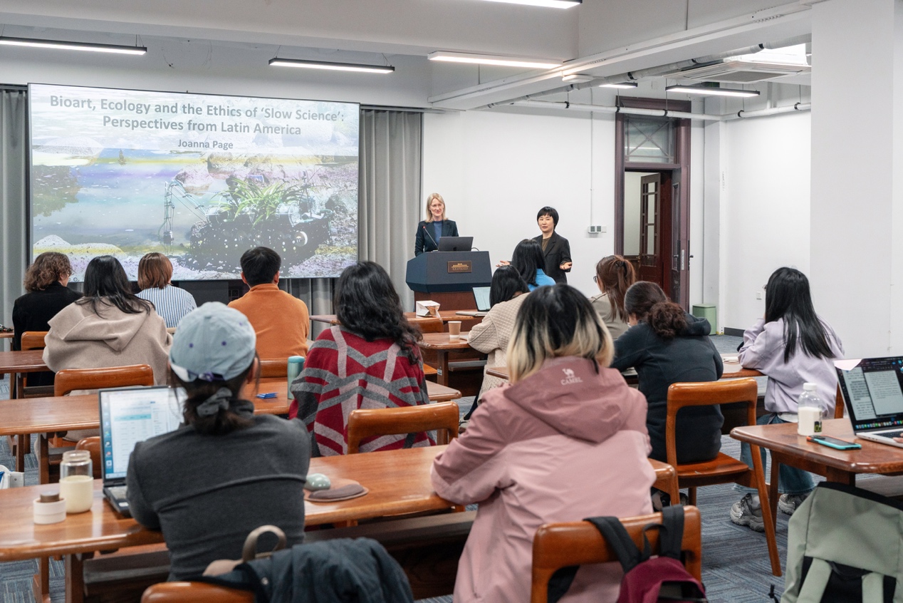 在当代艺术与科学日益交汇的背景下,生态艺术究竟是对技术权力的批判,还是与之构成了更为隐蔽的共谋?乔安娜教授在4月1日《生物艺术、生态与“慢科学”的伦理:来自拉丁美洲的视角》的讲座中,从拉丁美洲当代生态艺术的实践案例切入,对这一议题进行了深入讨论。