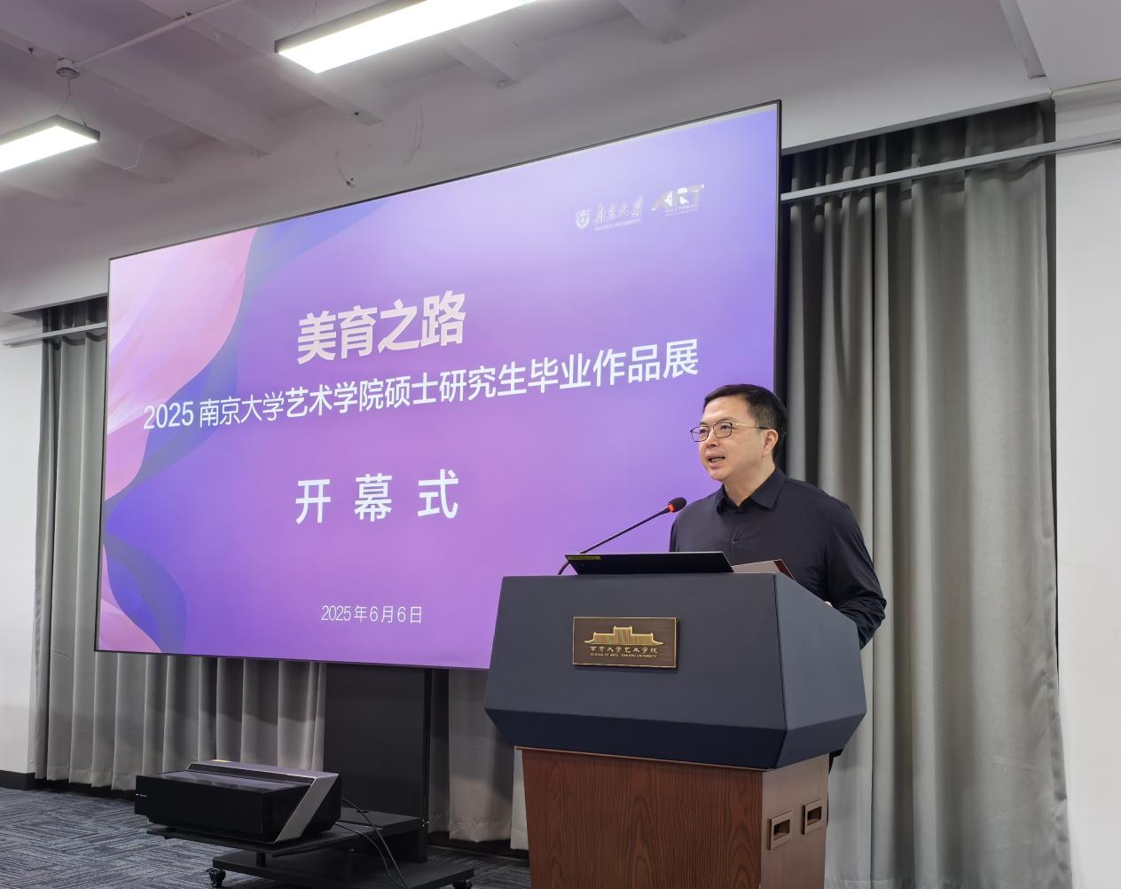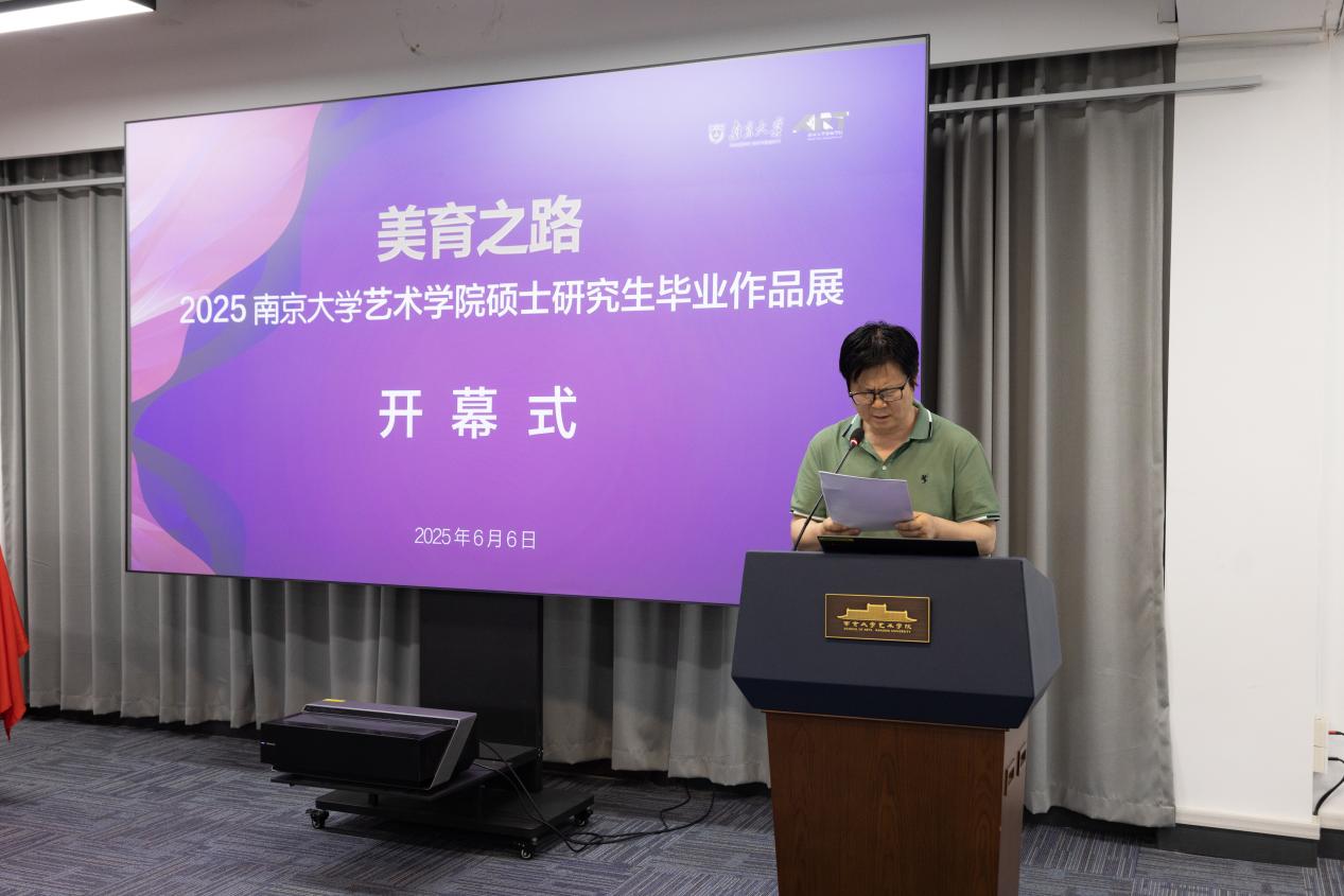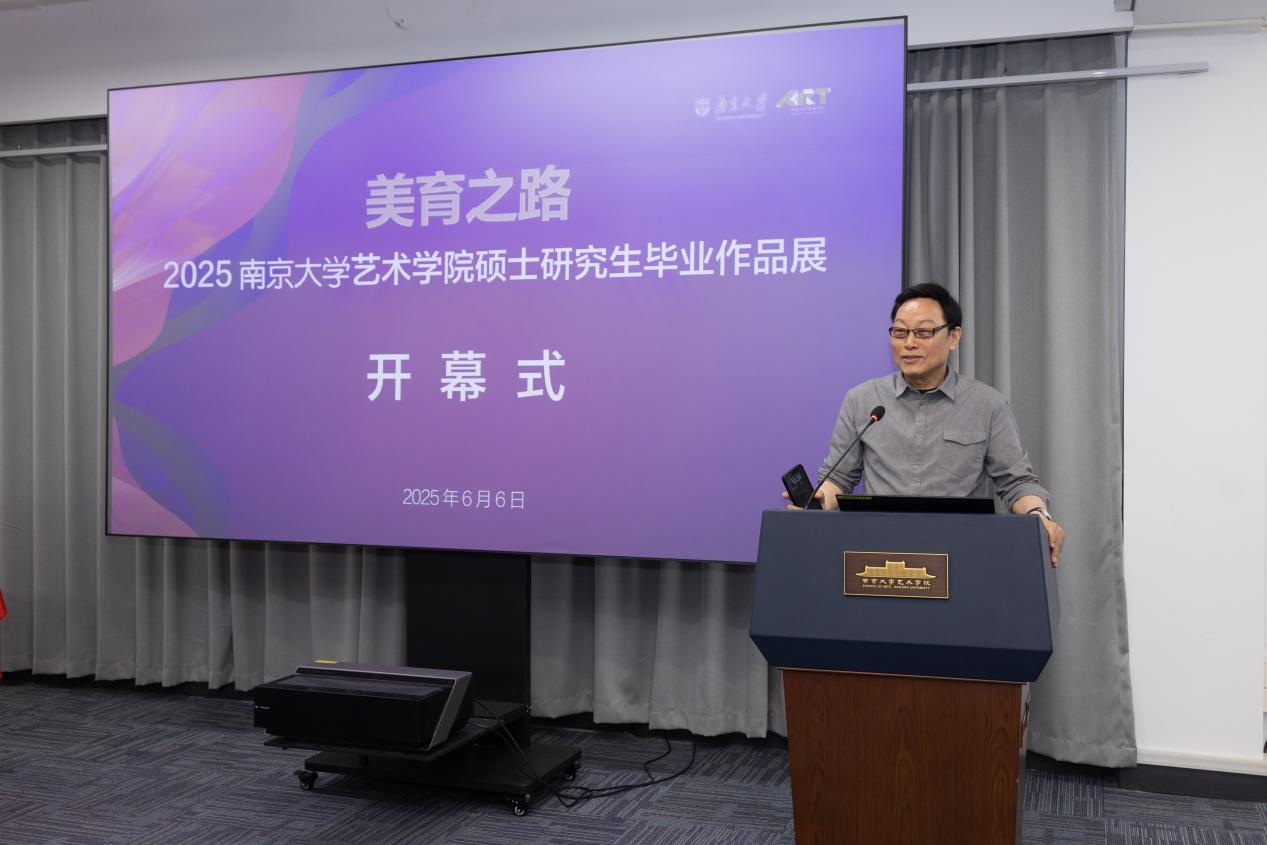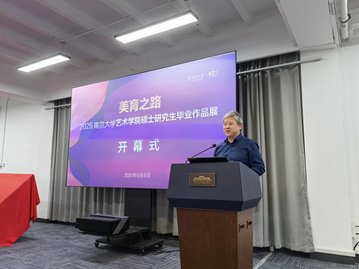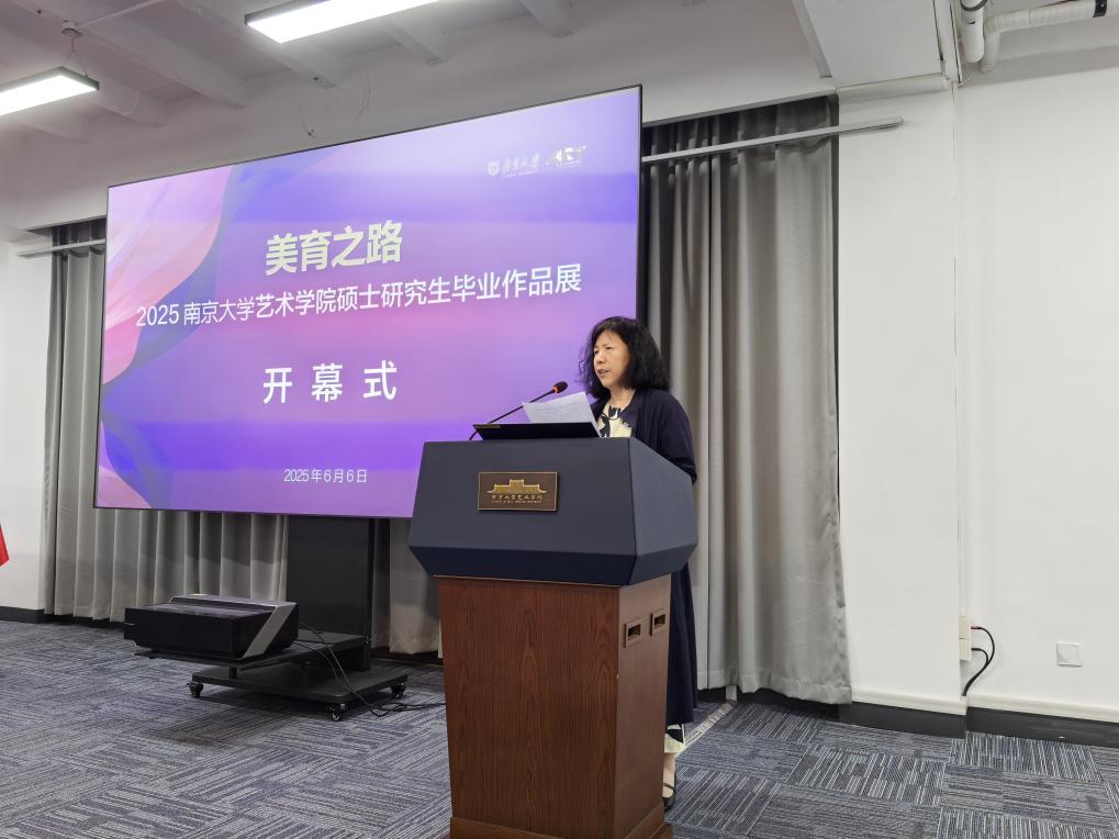 桃花坞 院长赵奎英教授在开幕式上发表致辞。她代表学院向莅临开幕式的嘉宾表示欢迎,对毕业生表示祝贺,并向指导教师致谢。赵院长表示,本次展览集中呈现了学院创新育人成果,展现了南大“诚朴雄伟”的学术品格。在人工智能时代,学院坚持“守正创新、大美育人”理念,推动理论研究与创作实践深度融合。她勉励毕业生“一切艺术都有诗意的本质,伟大的作品不能缺少理想的光晕”,希望同学们传承南大精神,在艺术道路上勇攀高峰。