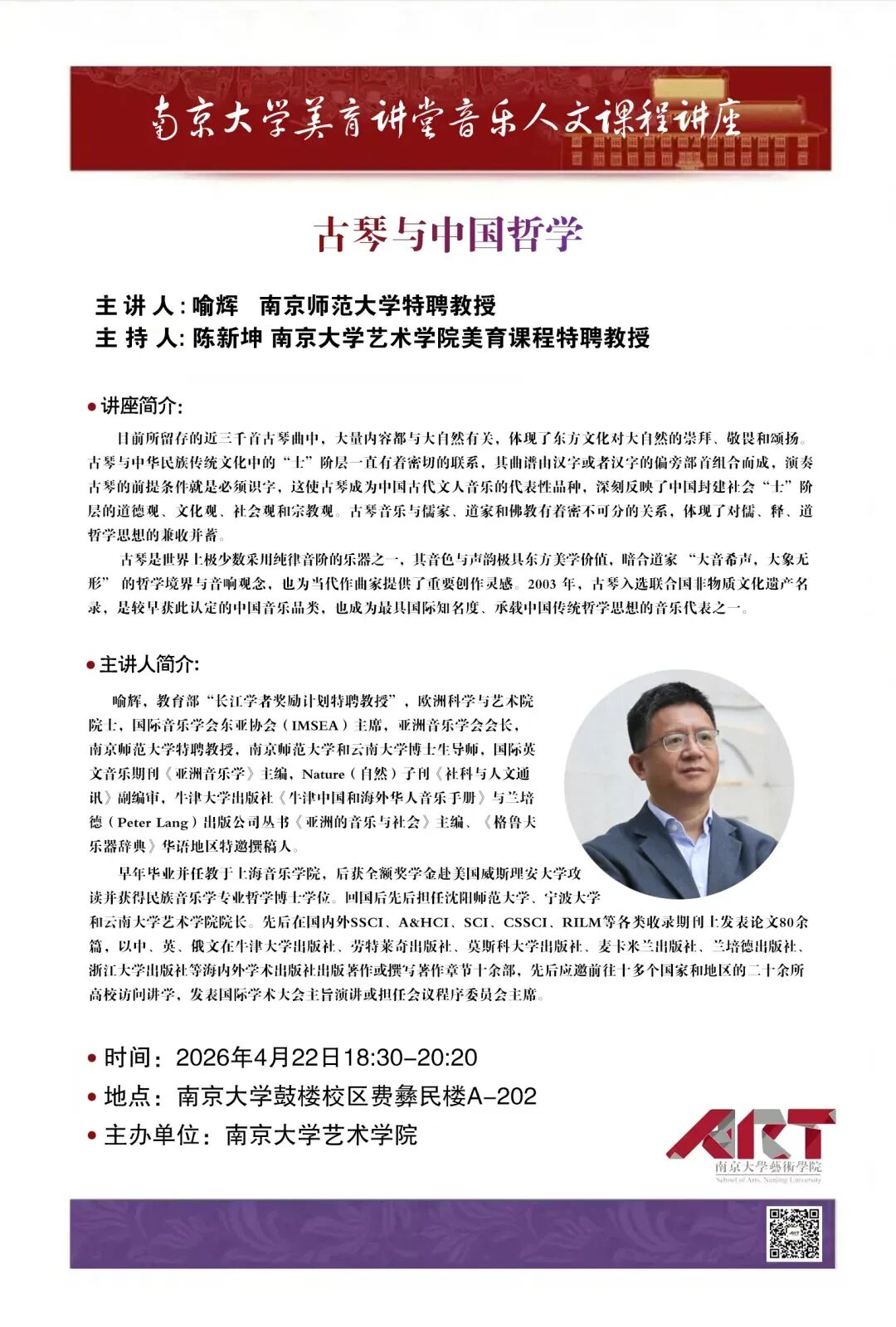 陈新坤,南京师范大学音乐学院教授, 桃花坞 美育课程特聘教授。