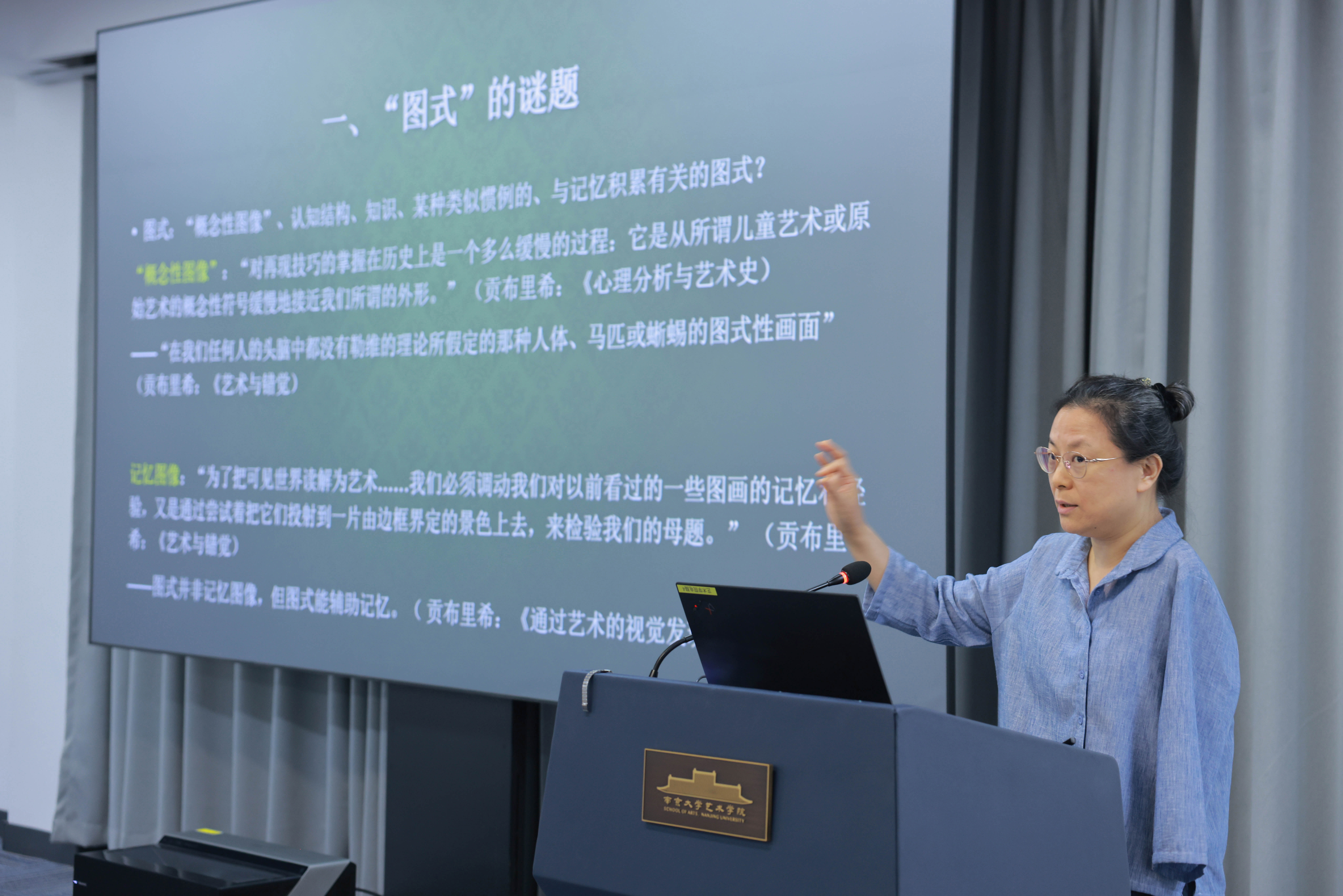 桃花坞 殷曼楟教授以《贡布里希“图式”的知觉心理学解释》为题开展了专题讲座。她首先介绍了人们对于贡布里希“图式”理论的一种最普遍的解读,即某种概念在先的符号学式的理解,这种理解将贡布里希的“图式”视为“概念性图像”、认知结构、知识、某种类似惯例的、与记忆积累有关的图式。然而,她发现贡布里希著作中对应此种理解所呈现出的某些观点有些模棱两可,并且她追问如果“图式”全然是“概念性图像”,那么最初始的图式是如何形成的呢?为此,殷曼楟教授尝试厘清此问题。她先借助罗夏墨迹测验的例子来重新检视所谓将“图式”看作“概念性图像”的理解。此例中,图式在艺术家创作或观看者观画的过程中所起的是预测、心理定向和投射的作用。此种理解下,艺术家所做的便是通过制图制像技术来引导观者形成视觉错觉,但其实际上是一种注意力习惯的引导问题。不过,在该概念性图式的理解中,它涉及的视知觉是有选择性“看到”的,这也意味着人们可能会看不到。这就是所谓的“当心灵受骗而跑到事实之前”、一种“视觉中断监测仪”原理。回到最初始的图式如何形成的问题时,殷曼楟教授从贡布里希的《秩序感》一书中找到了回应之处。她指出这将涉及到人们将经验世界分解的过程、将知觉明确化的过程、将毫无差别的整体特殊化、分节化并做出一些区分的过程。最后,殷曼楟教授概括出了两种知觉意义上的图式概念,即意义的知觉和秩序的知觉。意义的知觉即文化社会惯例构成的、影响人们看到什么以及看不到什么的图式,秩序的知觉则是按照简单原理去看的、简化后的一种知觉。